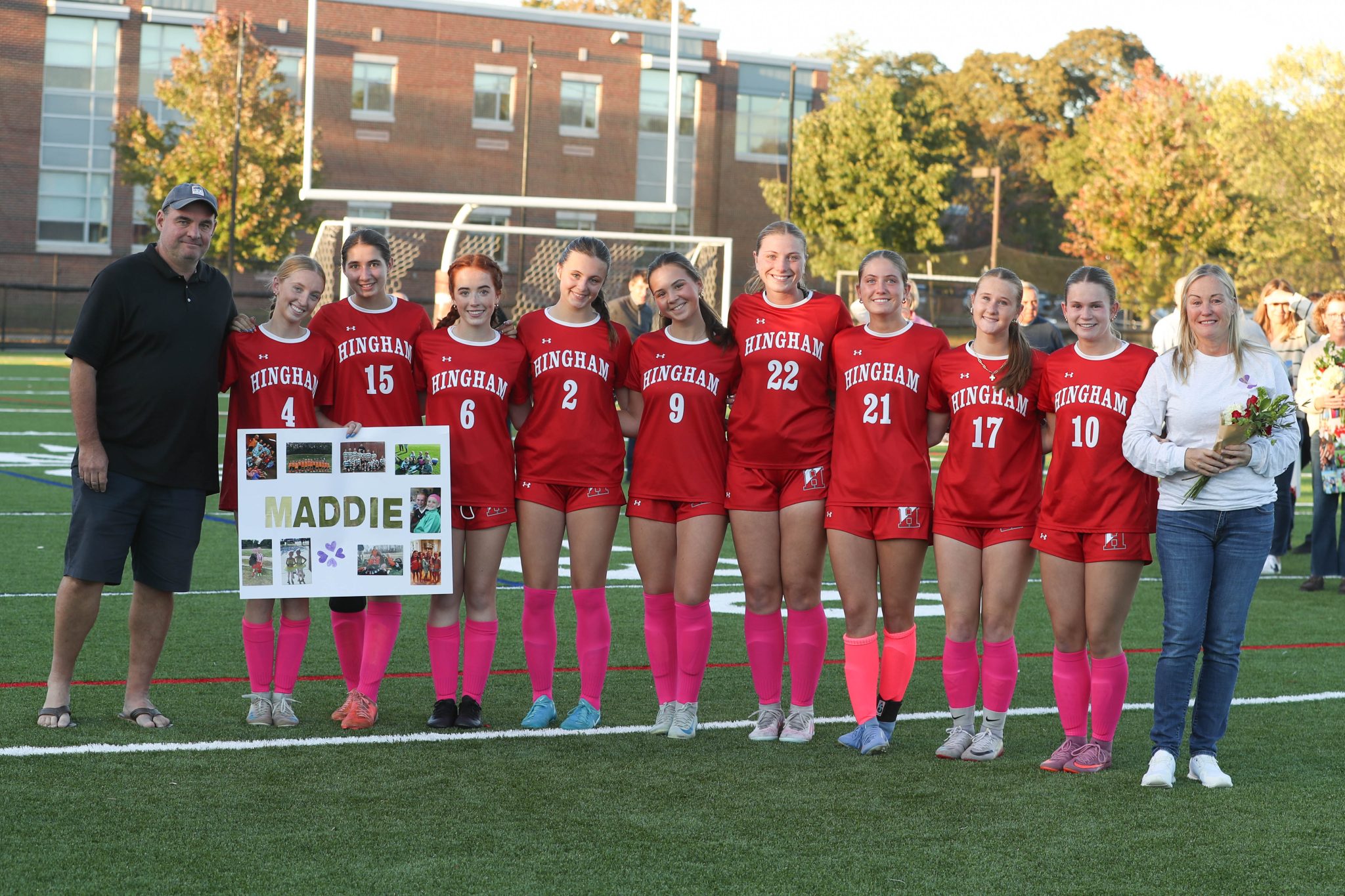 “Maddie’s selflessness and perseverance is something that the Hingham girls soccer program will always look up to.” Downey went on to say. “Even while fighting a horrible disease and going through treatment, she continued to do the things she loved while also thinking about what she could do to help others. The mission of Maddie’s Promise is so important and they have done amazing things to raise awareness and raise money to help kids fighting cancer. It’s been awesome to support that mission by playing a game every year solely dedicated to Maddie’s Promise.”