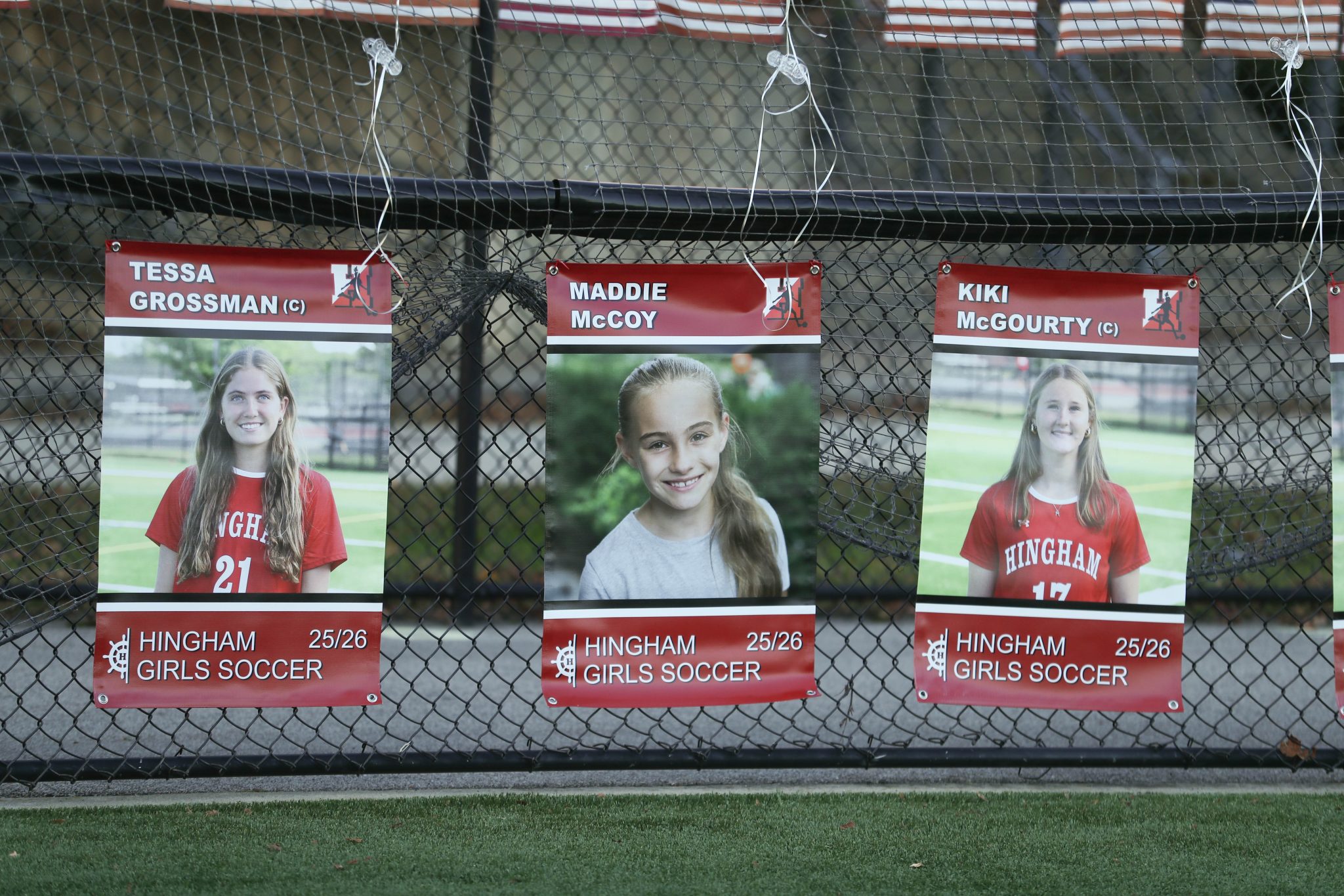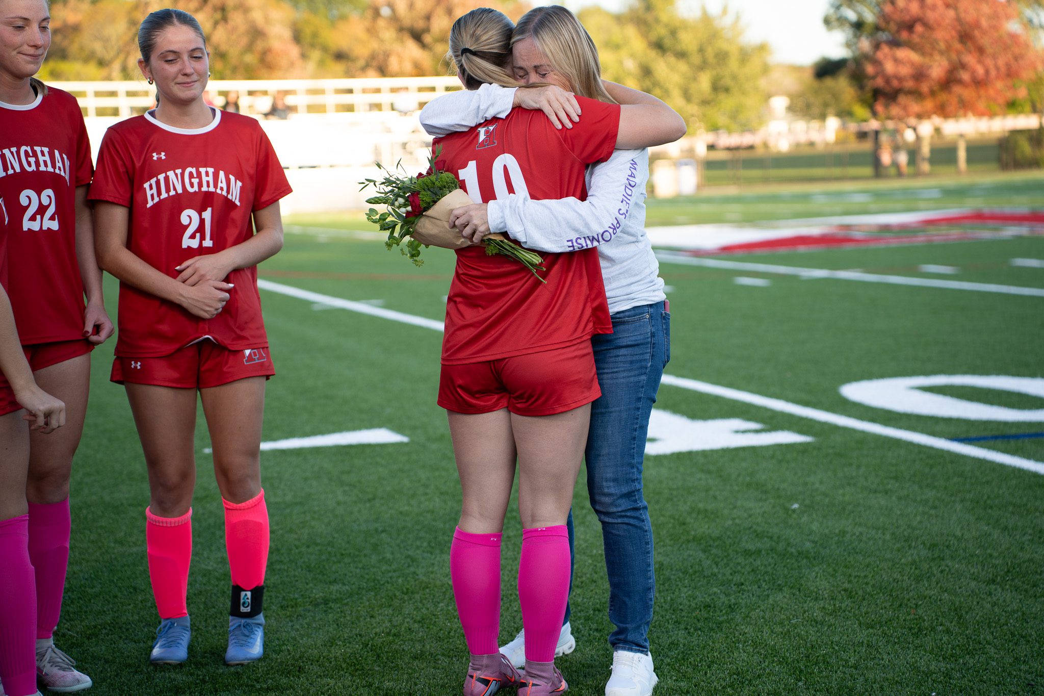“To me and the whole team it meant so much to have her included on this night,” Downey said. “Many of the seniors and juniors played Hingham Youth soccer and Club Soccer at Galway with Maddie when we were little. Our dads actually coached us. Even when Maddie got sick she never wanted to stop, she played through it all for as long as she could. The McCoys have continued to be a big part of the Hingham Girls Soccer program, and it just felt right to include them in this night. Lucy McCoy, Maddie’s younger sister, is now a freshman and apart of the program as well.”