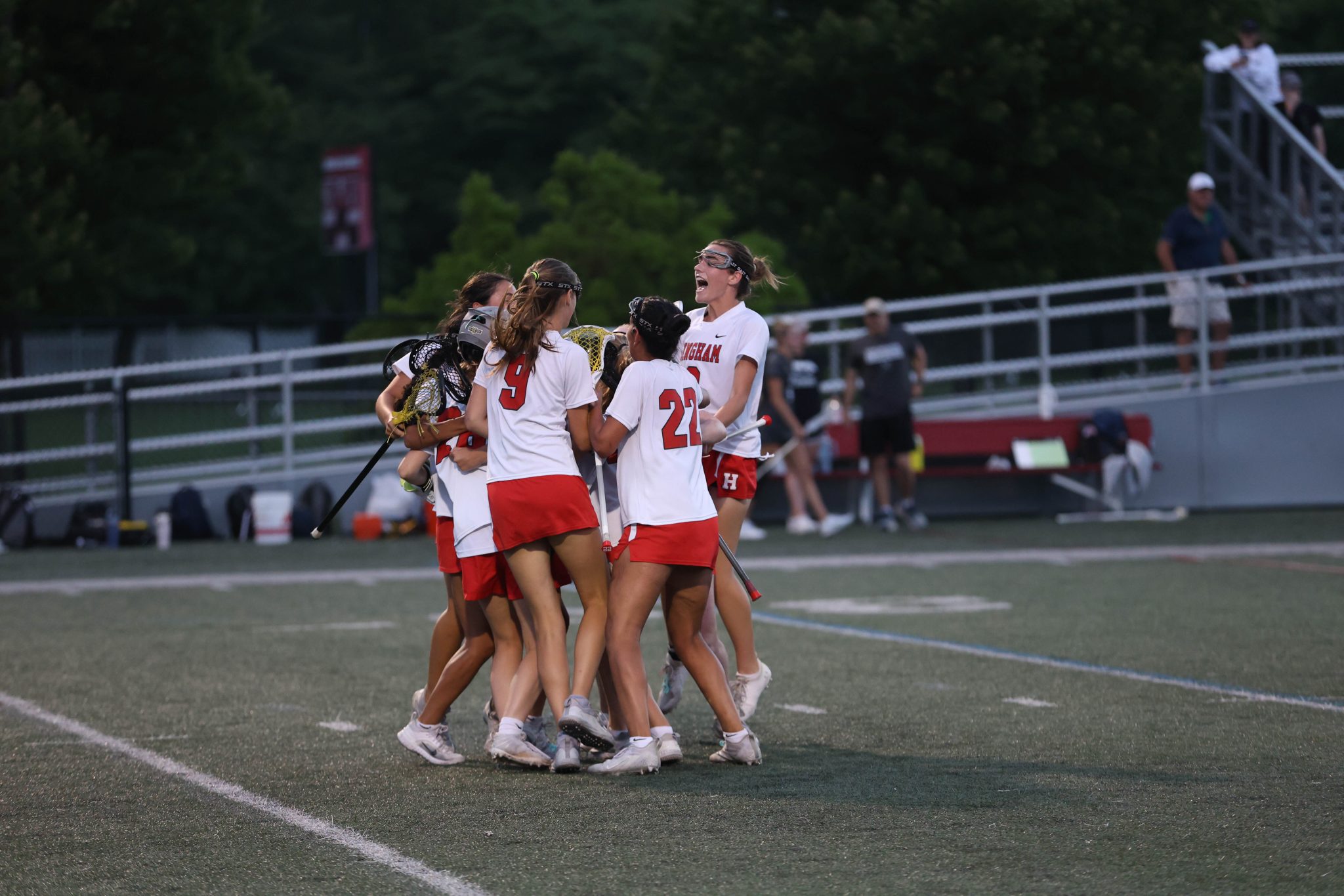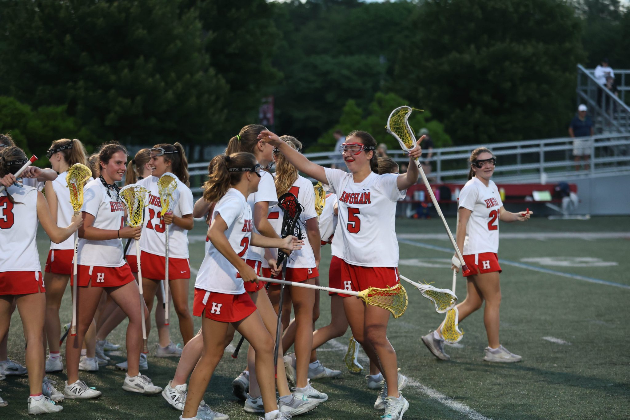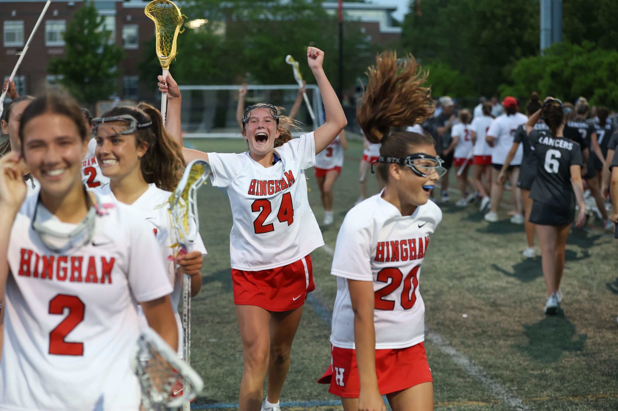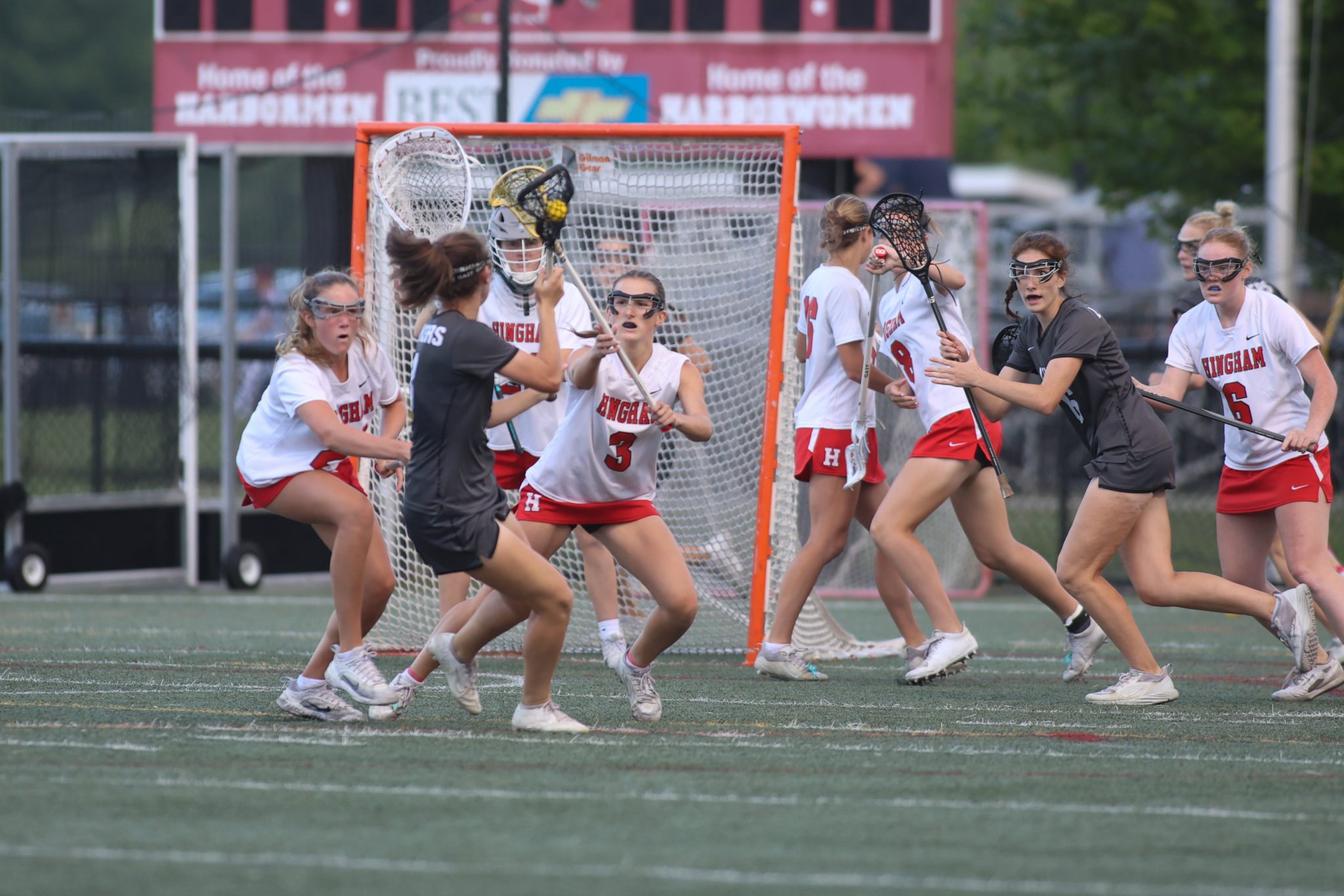 Hingham’s 13-8 win was fueled by Grace Maroney’s 5 goals. Maeve Maroney and Neely Sgobbo each netted two goals of their own.