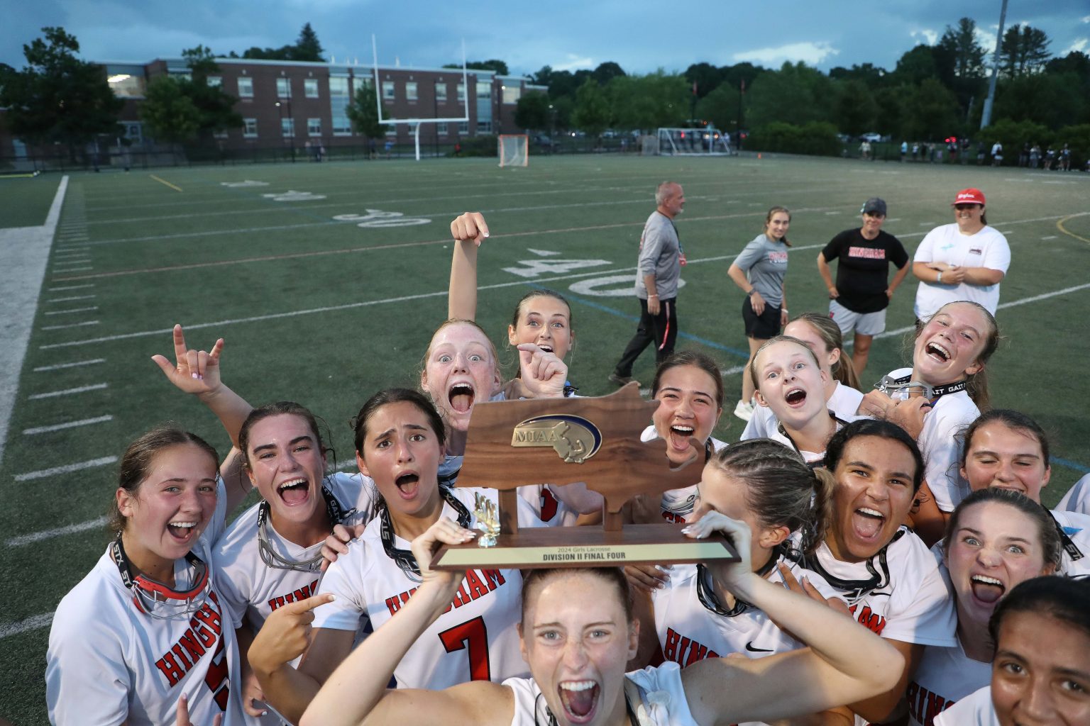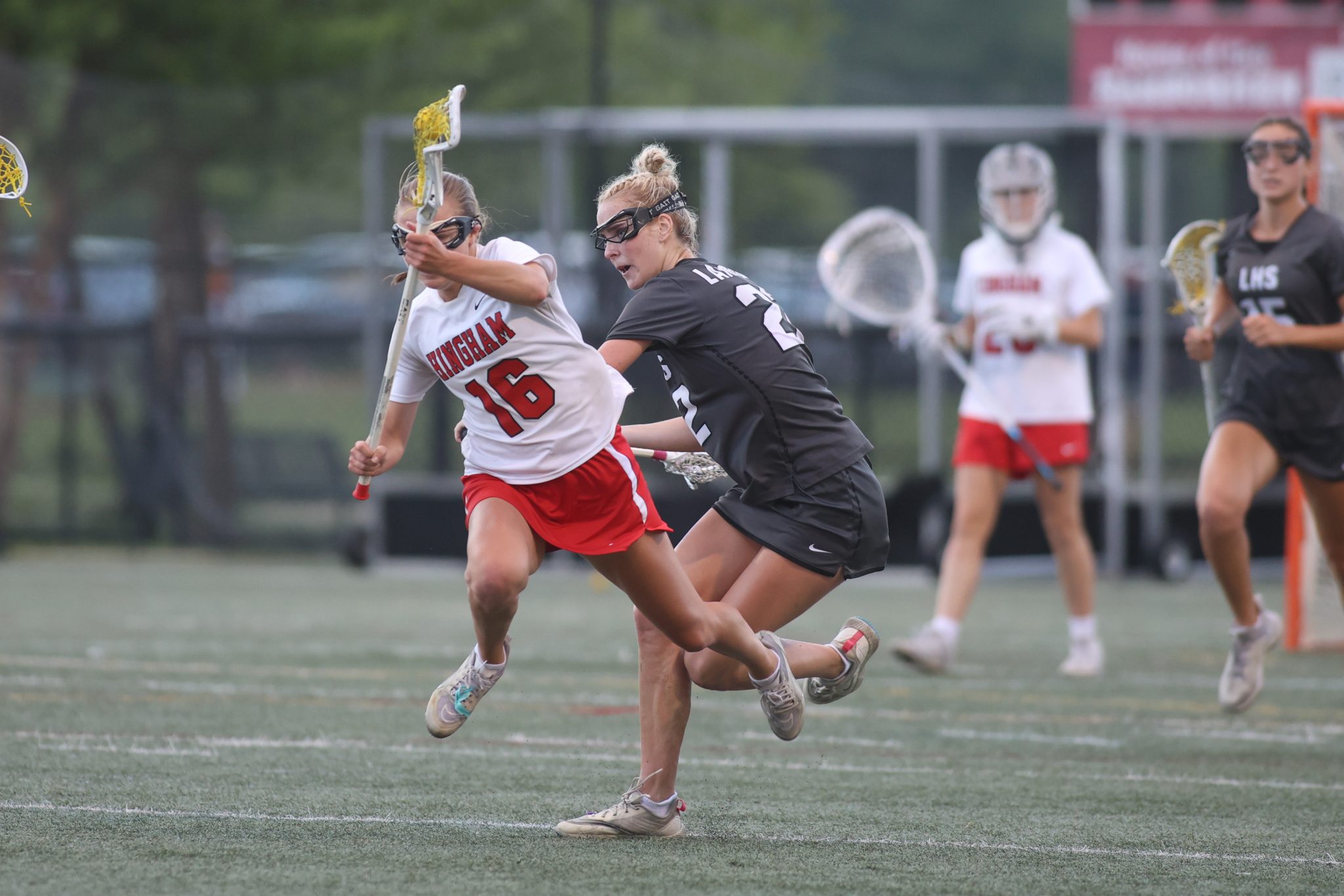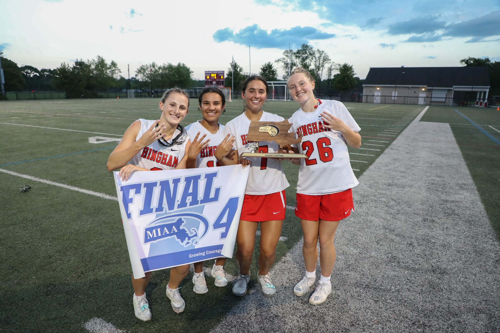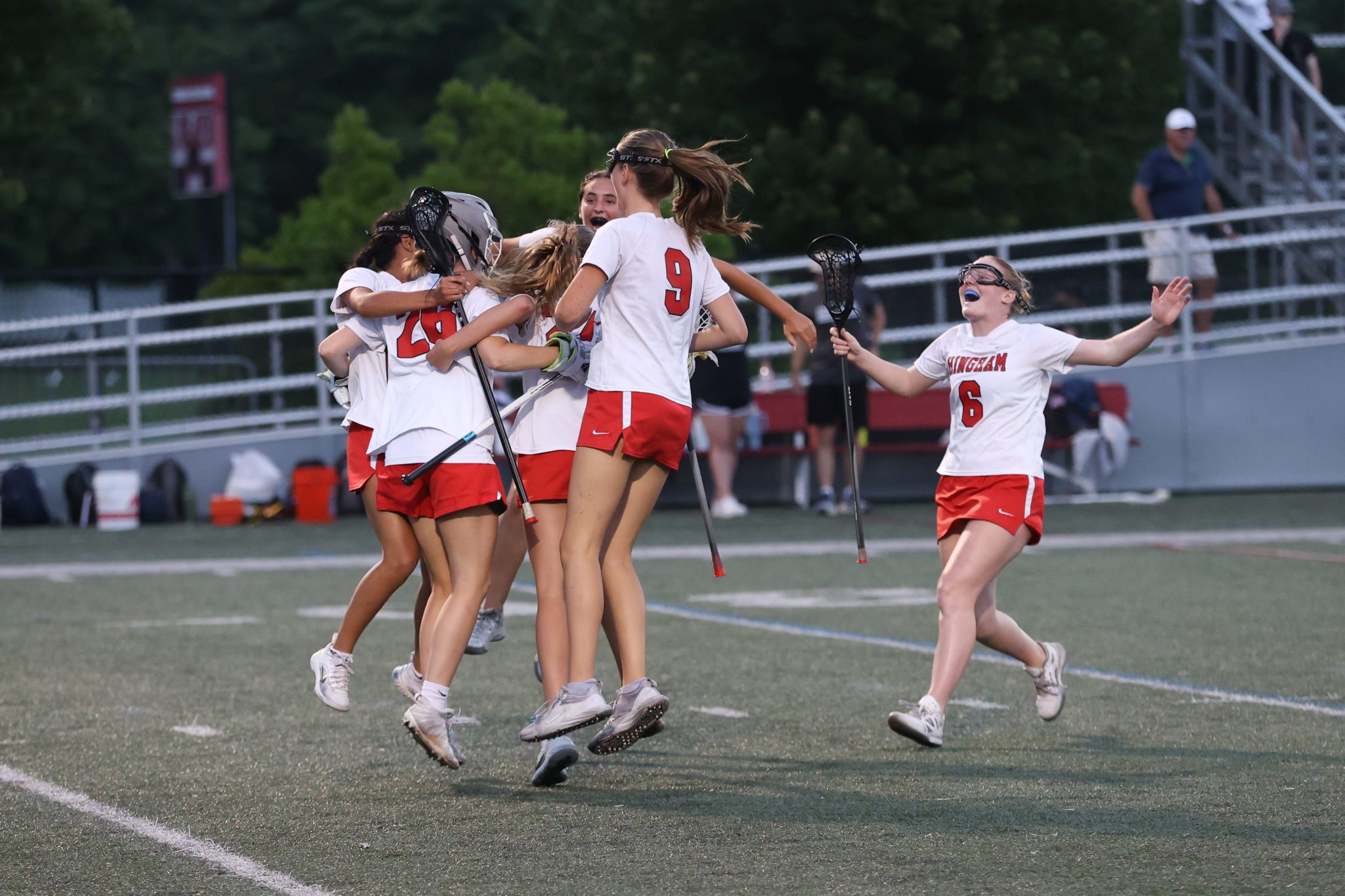 Hingham’s 13-8 win was fueled by Grace Maroney’s 5 goals. Maeve Maroney and Neely Sgobbo each netted two goals of their own.