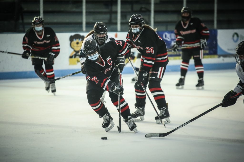 The impact of not having any preseason games was evident in the first couple of periods for the Harborwomen. They fell behind 1-0 in the first few minutes of the game until junior Ryan Maguire tied it up 5 minutes later. The score remained tied 1-1 at the end of the first period.