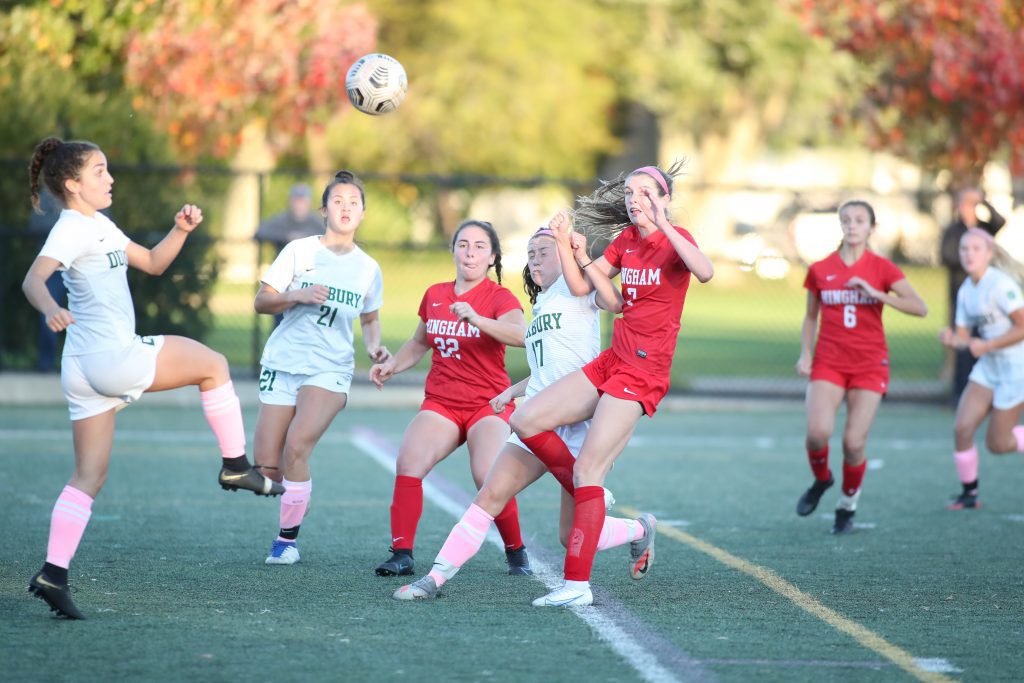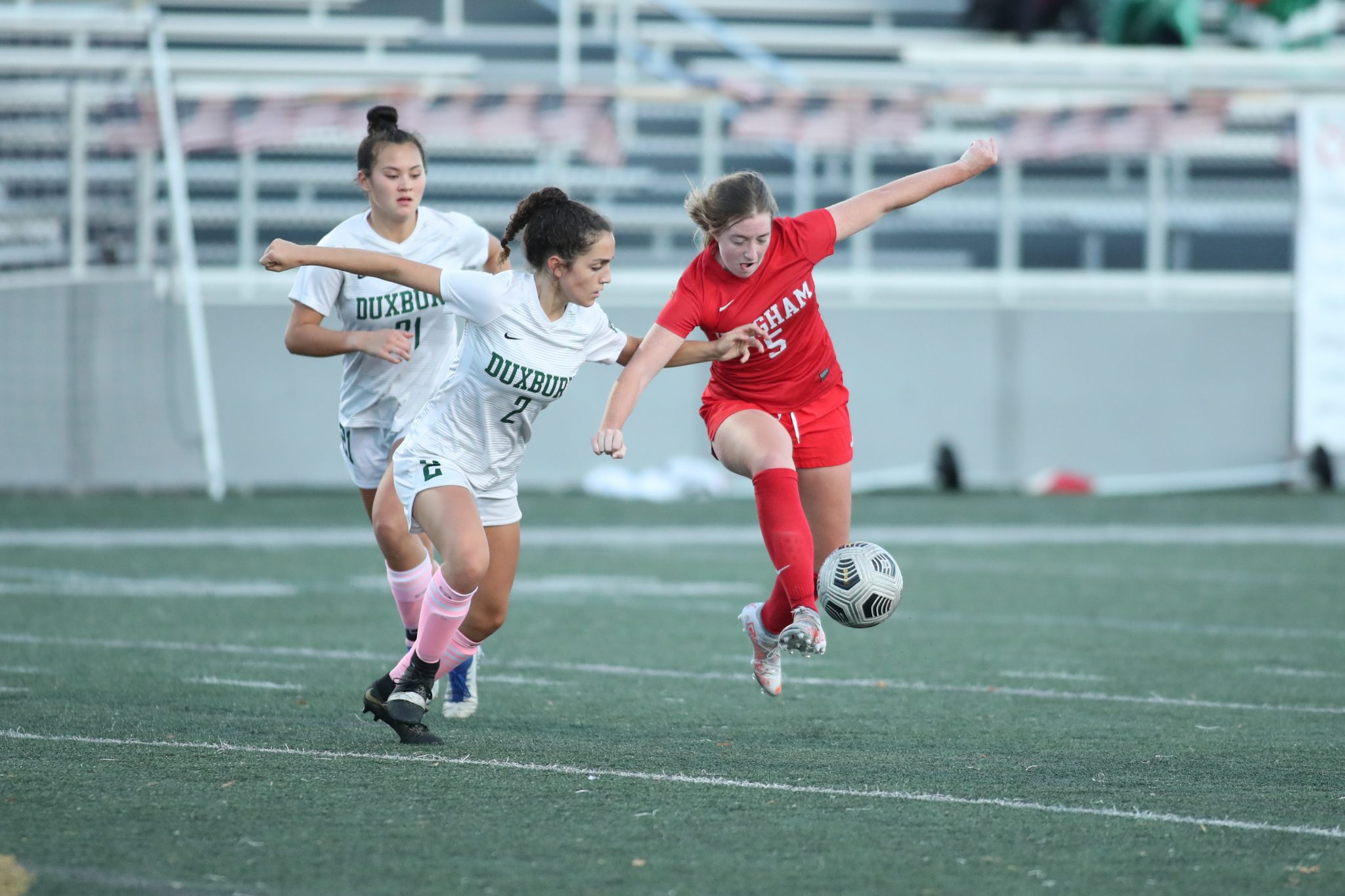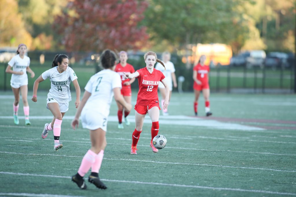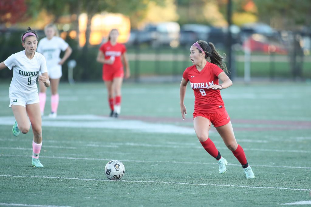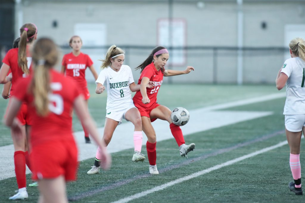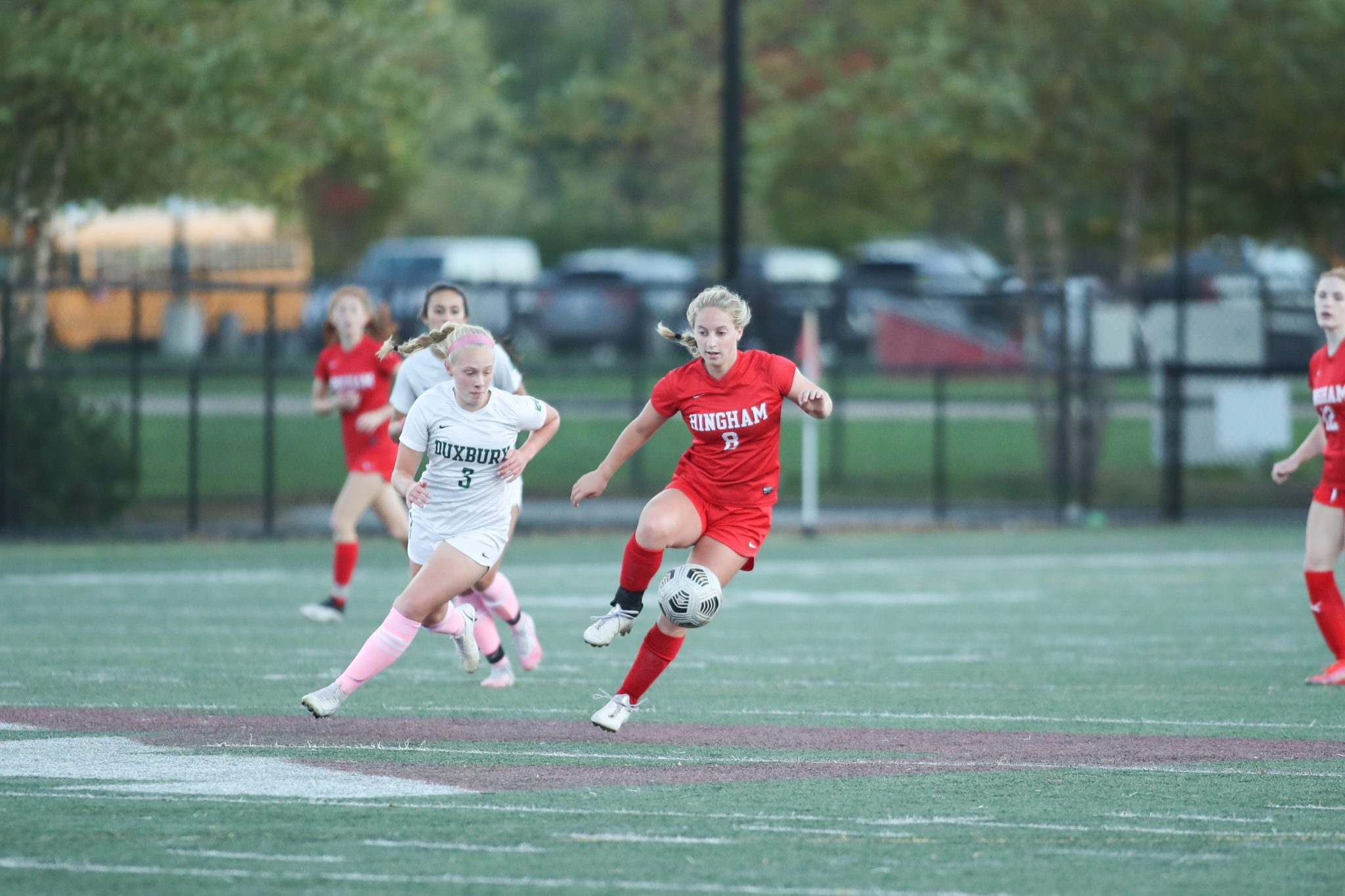 The joy of senior night quickly wore off once the game started. Duxbury was the one that came out with energy and momentum that caught the Harborwomen off guard. The Dragons scored twice in the first 20 minutes. This was the biggest deficit the team had faced all year. And while Hingham scored two goals of their own in the half, both were waived off due to offsides calls.