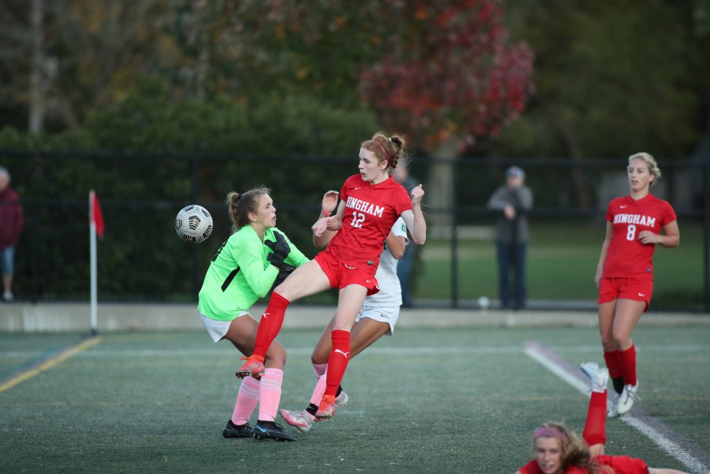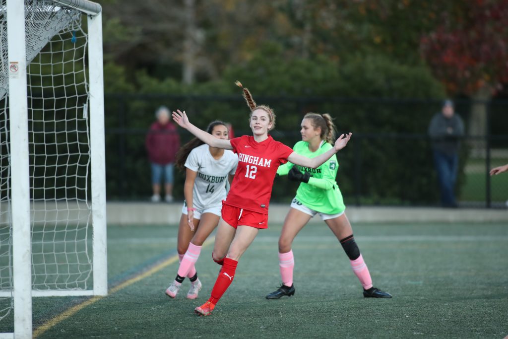 Reale gathered her third assist of the game when junior Emily Gibbons gave the Harborwomen the lead for good on a great midair, side of the foot shot with 15 minutes to go. Sophomore Claire Murray added an insurance goal to put the game away for Hingham.