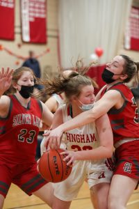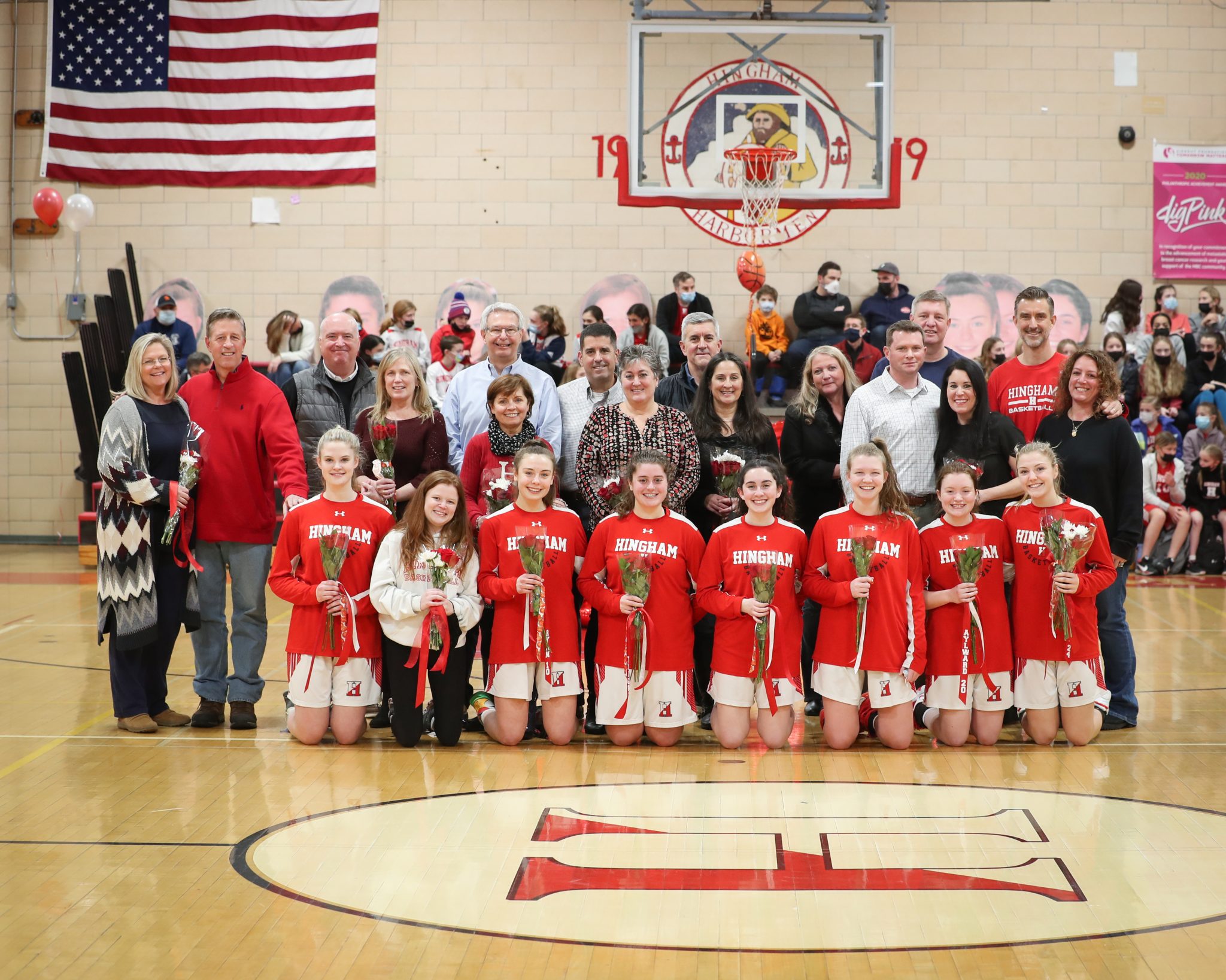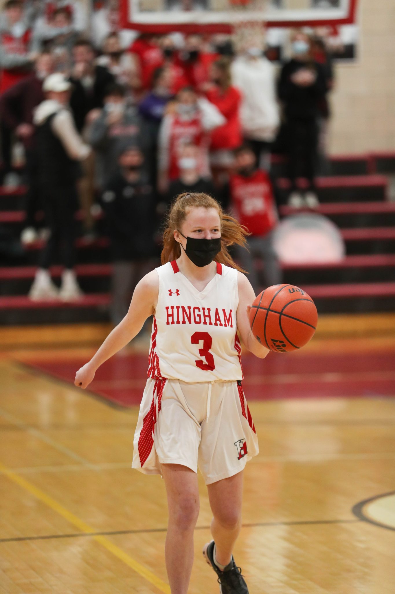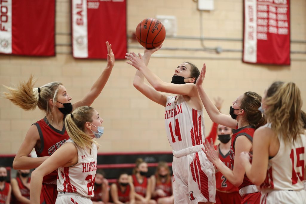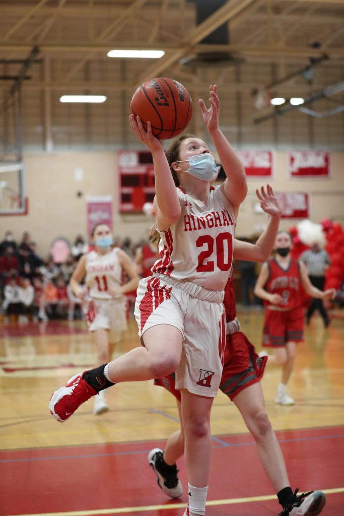 Hingham’s defense also stood out. In previous game this season, they seemed to have run out of gas towards the end of games. Whitman-Hanson comes to mind. But in this game, their defense peaked in the final frame. The saying goes that good defense creates good offense and that was clearly the case on Tuesday. Great team defense turned into great offensive opportunities, which led to a convincing 66-35 win on senior night.