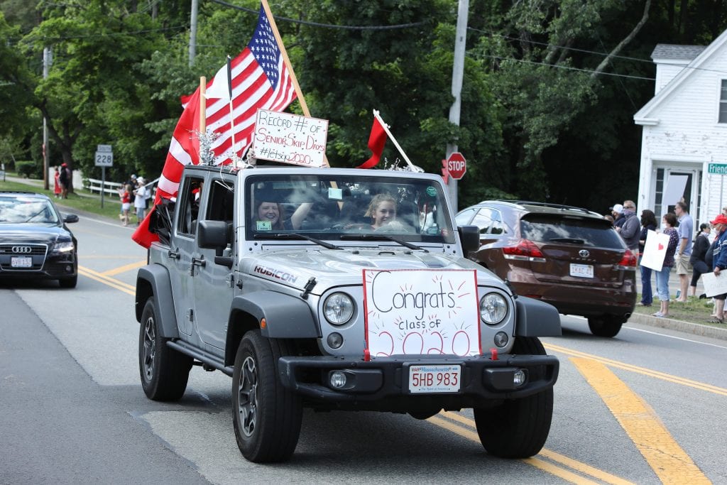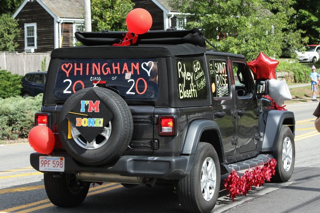 This morning was the perfect weather for the Hingham High School’s Class of 2020 Senior Car Parade. Crowds gathered (safely) to watch the senior class cruise down Main street escorted by the Hingham Police and Hingham Fire Departments. Seniors decorated their cars, many showcasing where they plan to attend college next year, which was fun to see! It was a great way for the Town of Hingham to come together and safely celebrate the graduating class. Could a new tradition have been born out of the pandemic?!