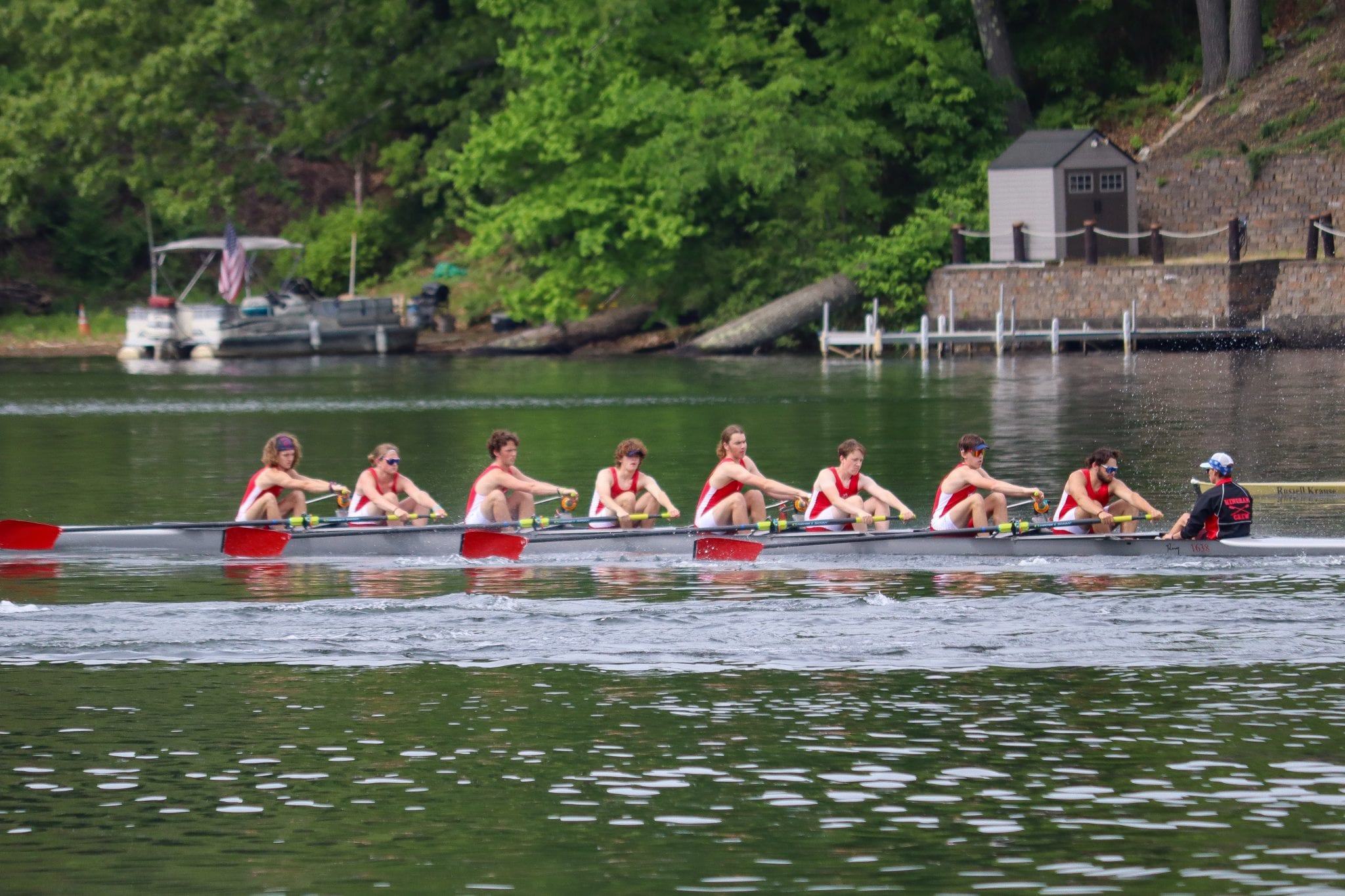 Shrewsbury took first place in the boys varsity eight (1V) race with St. John’s two seconds behind, and Hingham crossing the finish line two seconds later. HHS boys 1V was coxed by Eric Smith and included rowers Jack Magner, Gabe Wagner, John Rogan, Tasman Claridge, Luke Turnak, James Dietterich, Cam Santarelli, and Leo Williams.