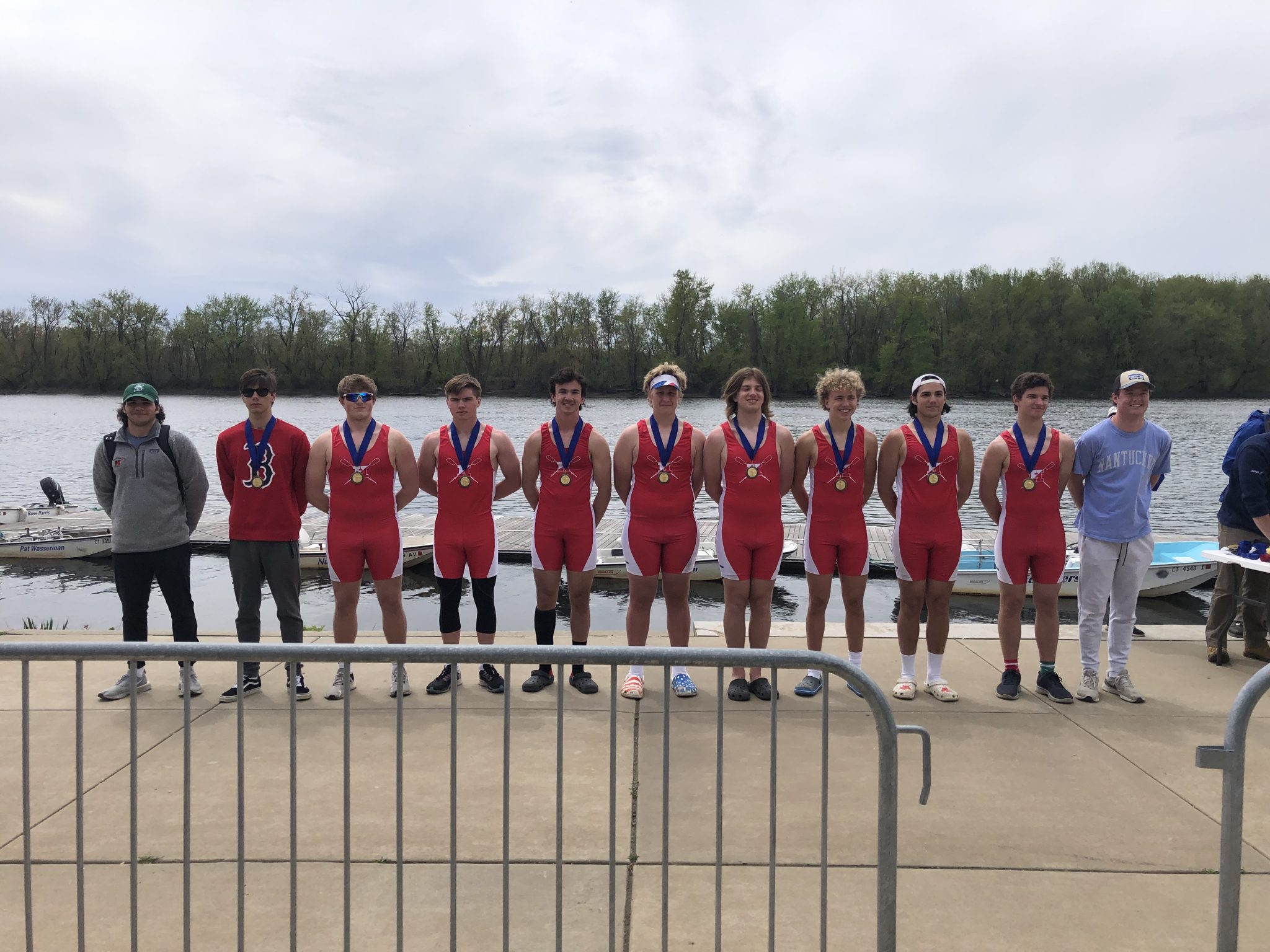 Rowing for the boys novice boat were Slater Fairfield, Ethan Parnell, James Barry, Brian Magner, Will Cassidy, Sean Barry, Owen Franklin, Trevor Steiner, and coxswain Quinn Gainey.