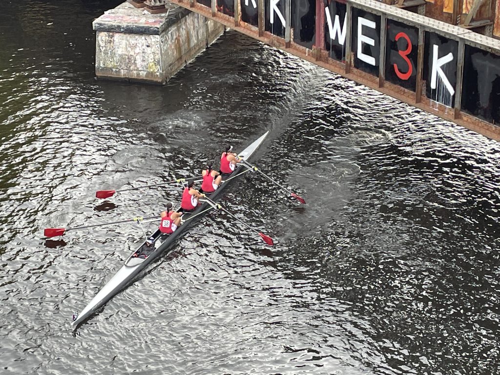 In the Women’s Youth Eights event at 12:03 p.m., the HHS crew includes coxswain Alexa Fox, Maeve Schnorr in stroke, Maisie Knies, Sophie Kerr, Isabelle Wagner, Ava Sugrue, Lynnayah Ryan, Marissa Matthews, and in bow Lydia D’Arcy.