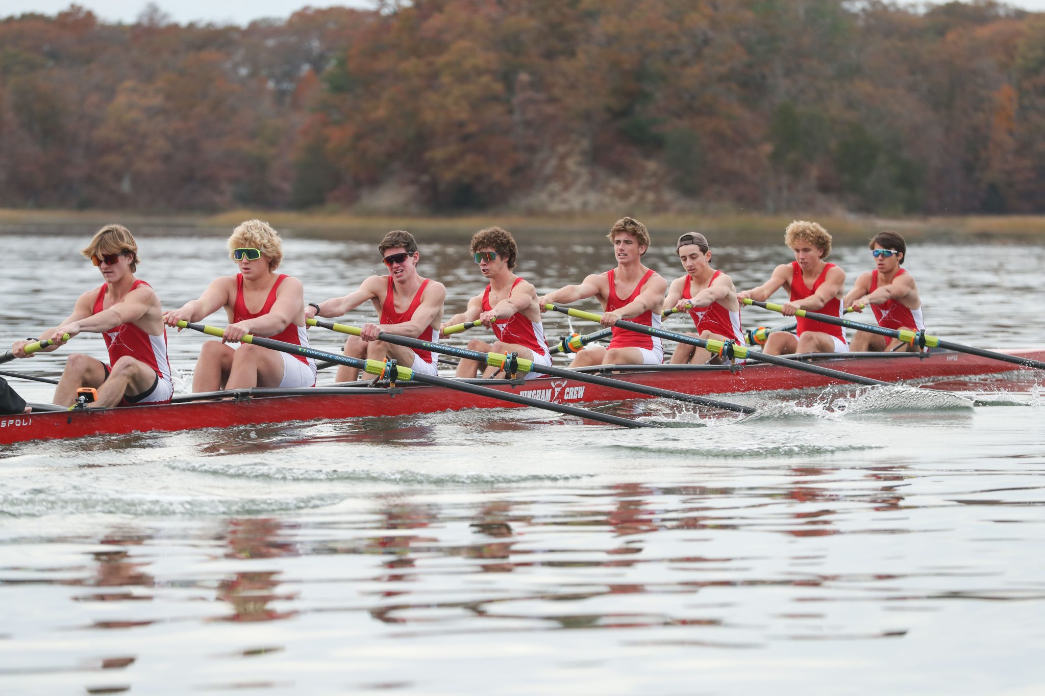 Hingham’s B boat was a mix of novice and varsity athletes, including Will Whitrap, Ryan Potter, Aqueel Bharmal, Zach Robbins, Michael Catalfano, Jack O’Leary, Luca Arienti, Brent Strauss, and coxswain Lucas Mangili.