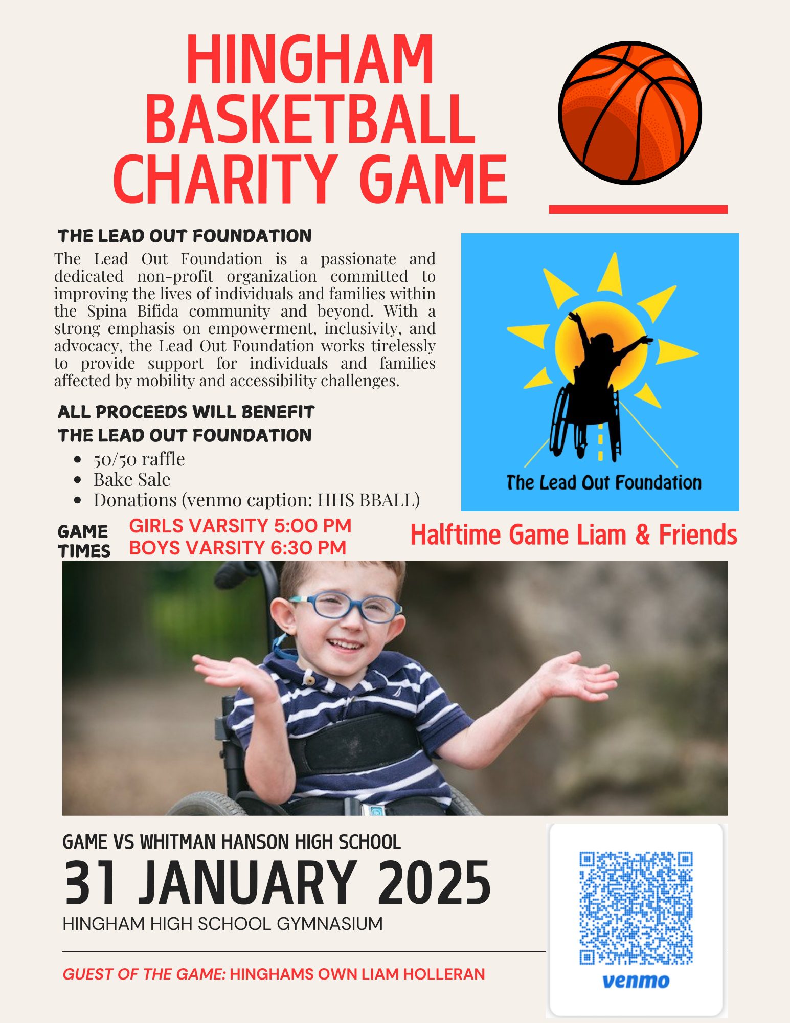 All proceeds raised will benefit “The Lead Out Foundation.” This foundation was founded by the Holleran Family of Hingham in 2021. Their first born son is a student in hingham schools who has spina bifida. The mission of the foundation aspires to make life easier for individuals and families affected by disabilities who face mobility and accessibility challenges. Your donation is highly appreciated and helps the foundation provide Quality of Life grants to families in need and supports advocacy & awareness initiatives.