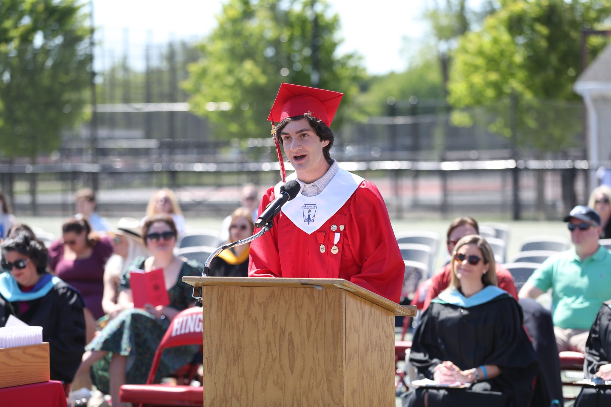 Graduates, these past four years we have all been in the same boat, fighting for the same goals, and feeling some degree of responsibility for one another’s success. Without you all, I would not be standing here now. We’ve shared notes and Quizlet sets with each other so we could all succeed on tests. We’ve cheered on one another at races and games to bring pride to our sports teams. We’ve also attended concerts and performances to support our very talented musicians and actors. All of our greatest successes come from the support of each other.