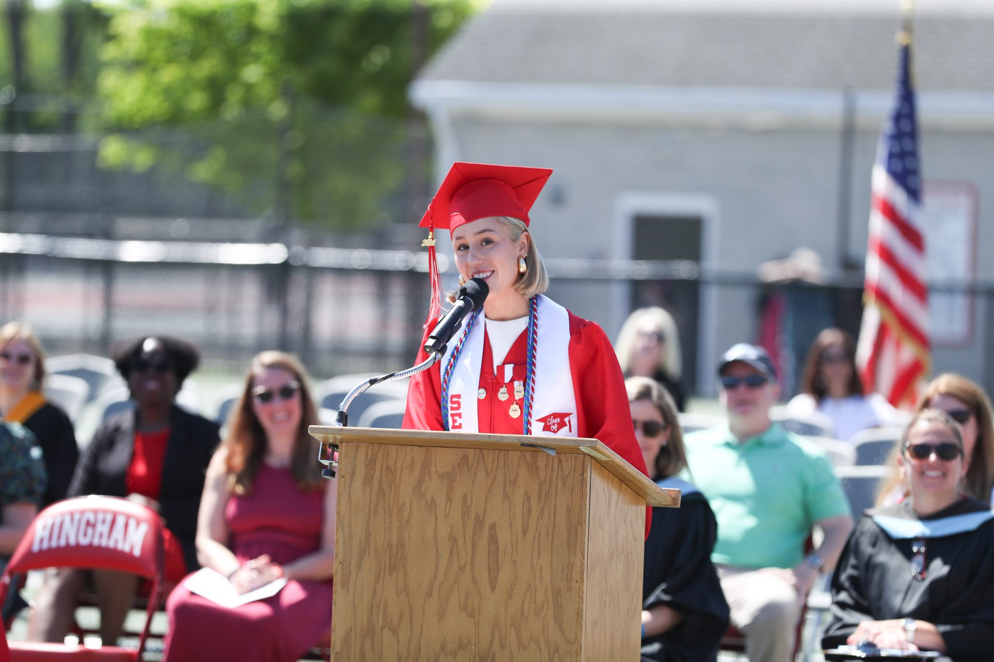 Below is a speech given by Isabel McCabe the Class of 2024 Chosen Student Speaker at Hingham High Schools’s Class of 2024 Graduation ceremony: