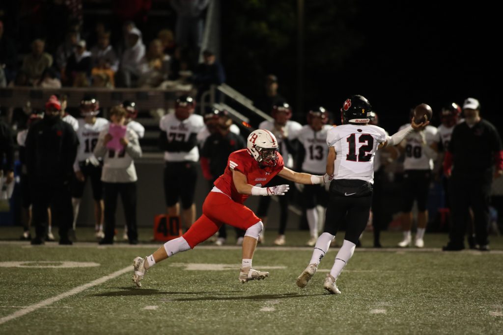 Senior linebacker Jayce Mellish fills the running lane quickly preventing big gains on the ground.