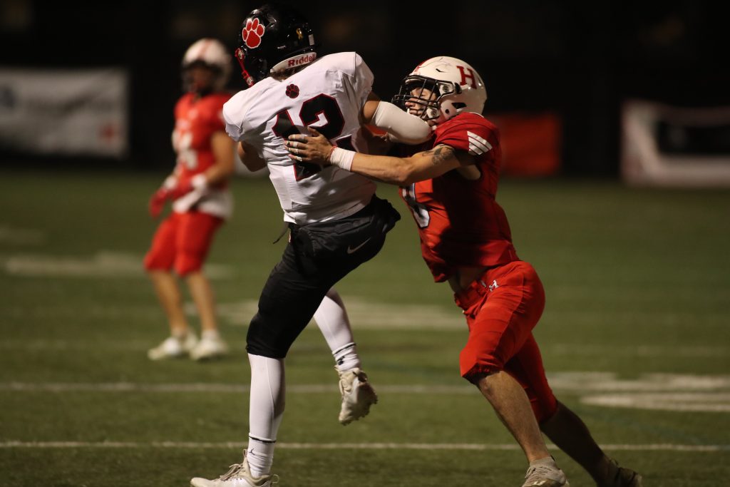 Other than one big pass play, the defense pretty much shut down the Whitman-Hanson offense.  While the Panther’s offense threw slightly more than most opponents this year, the secondary did a nice job break up passes or stopping receivers for no additional yards after the catch.  The front seven, which it has done consistently over the past four games, bottled up their run game throughout the game.