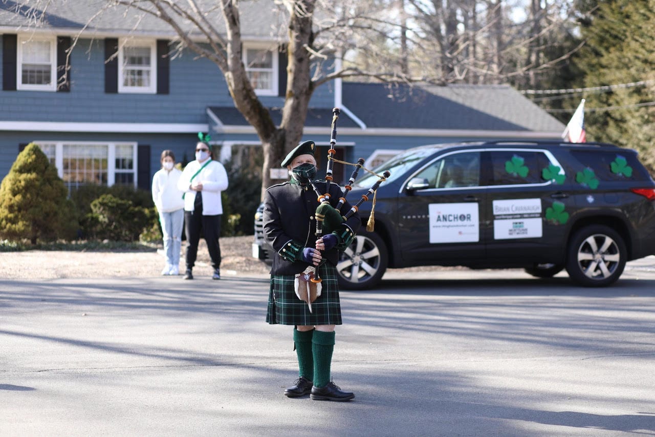“This was a really fun way to bring some joy to the community,” shared Brian Cavanaugh. “It’s been a tough year and we wanted to something festive for St. Patrick’s Day while keeping everyone safe close to home. With the beautiful weather, the luck of the Irish was on our side and the sounds of the bagpipes carried throughout each neighborhood for people to enjoy.”
