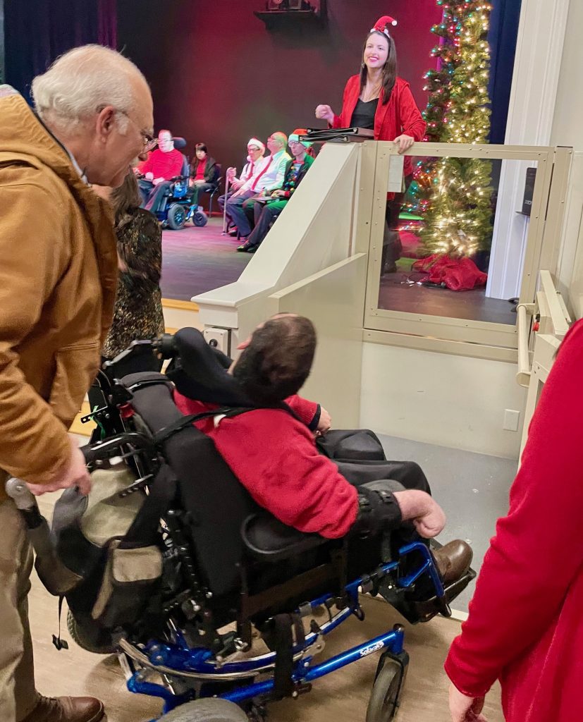 Fast forward to 2022, when Jerry began a project for Cardinal Cushing Centers, an organization with several locations on the South Shore that serves people of “all ages, all abilities, all together.” He was hired by Cushing to renovate its auditorium – which had been originally built back in the 1950’s. “Cushing’s auditorium needed a major overhaul to support our vibrant performing arts programs,” remembers Michelle Markowitz, President and CEO. “We had a vision of using the space for several purposes – not just for our performances but also for corporate events and meetings, neighborhood movie nights, and as a resource for other organizations that share in our mission.” Jerry, along with contractor Jim Balsamo, worked with Cushing to totally reimagine the space – making it accessible for Cushing participants and the community at large. Thanks to Cushing’s generous donors, this new auditorium (including a state-of-the-art wheelchair lift to get performers to the stage) was unveiled on Nov 15, 2023.