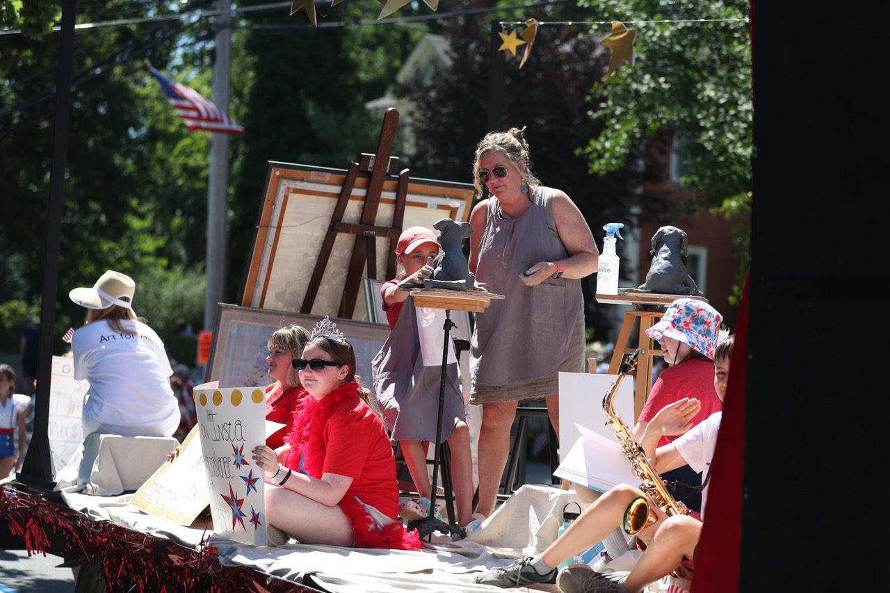 Another local artist, Jill Powell of Main Street Studios and one of her sculpting students Maya Holbrook, created pottery on the HAA float during the parade.