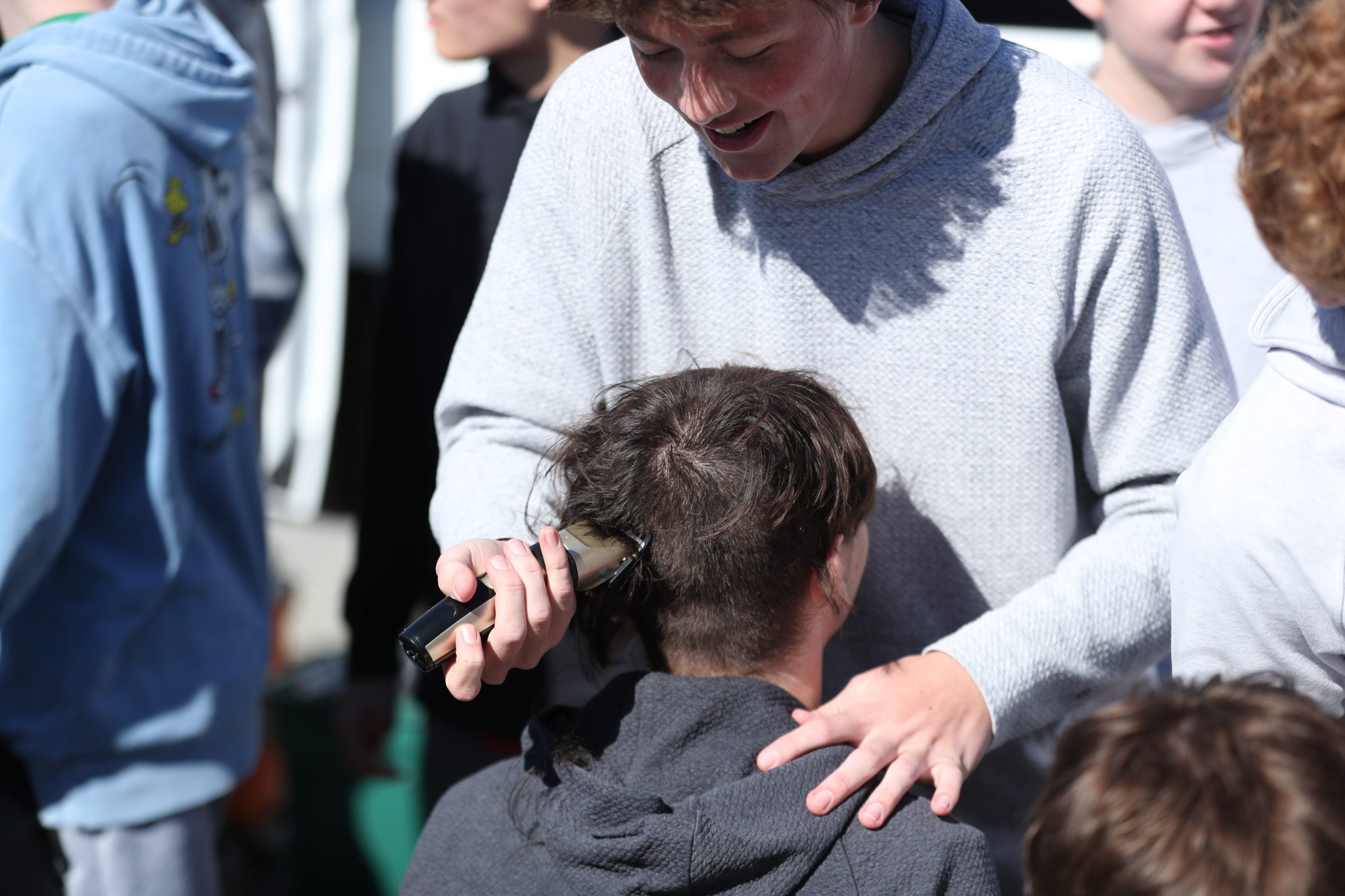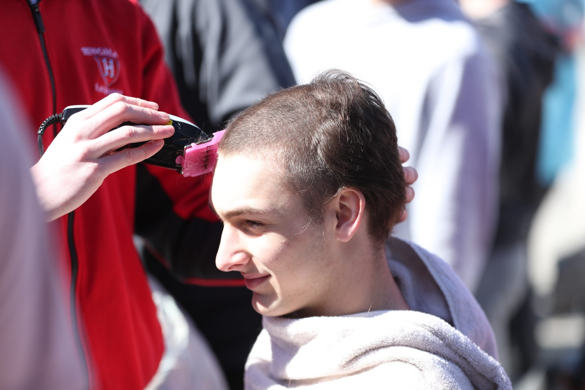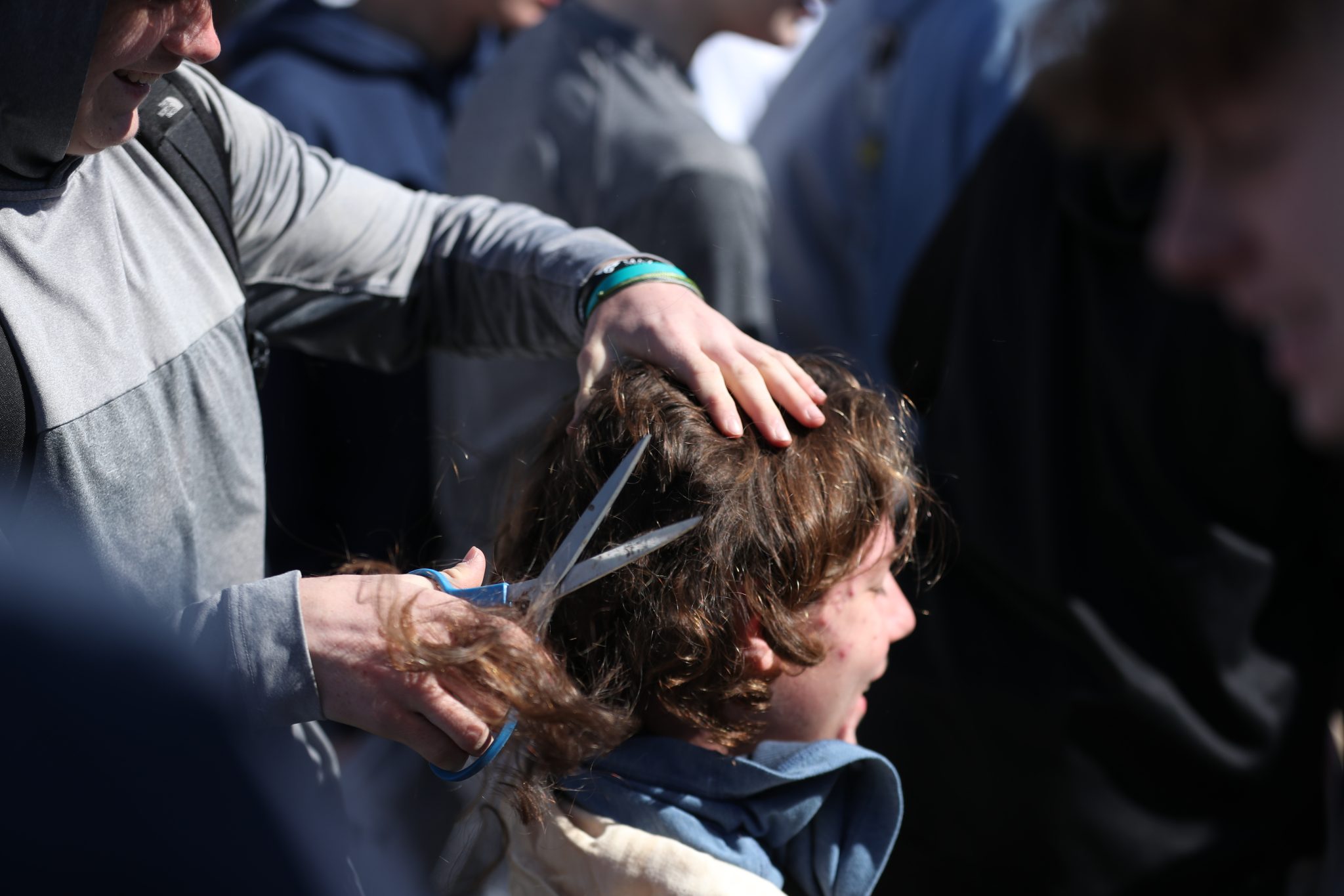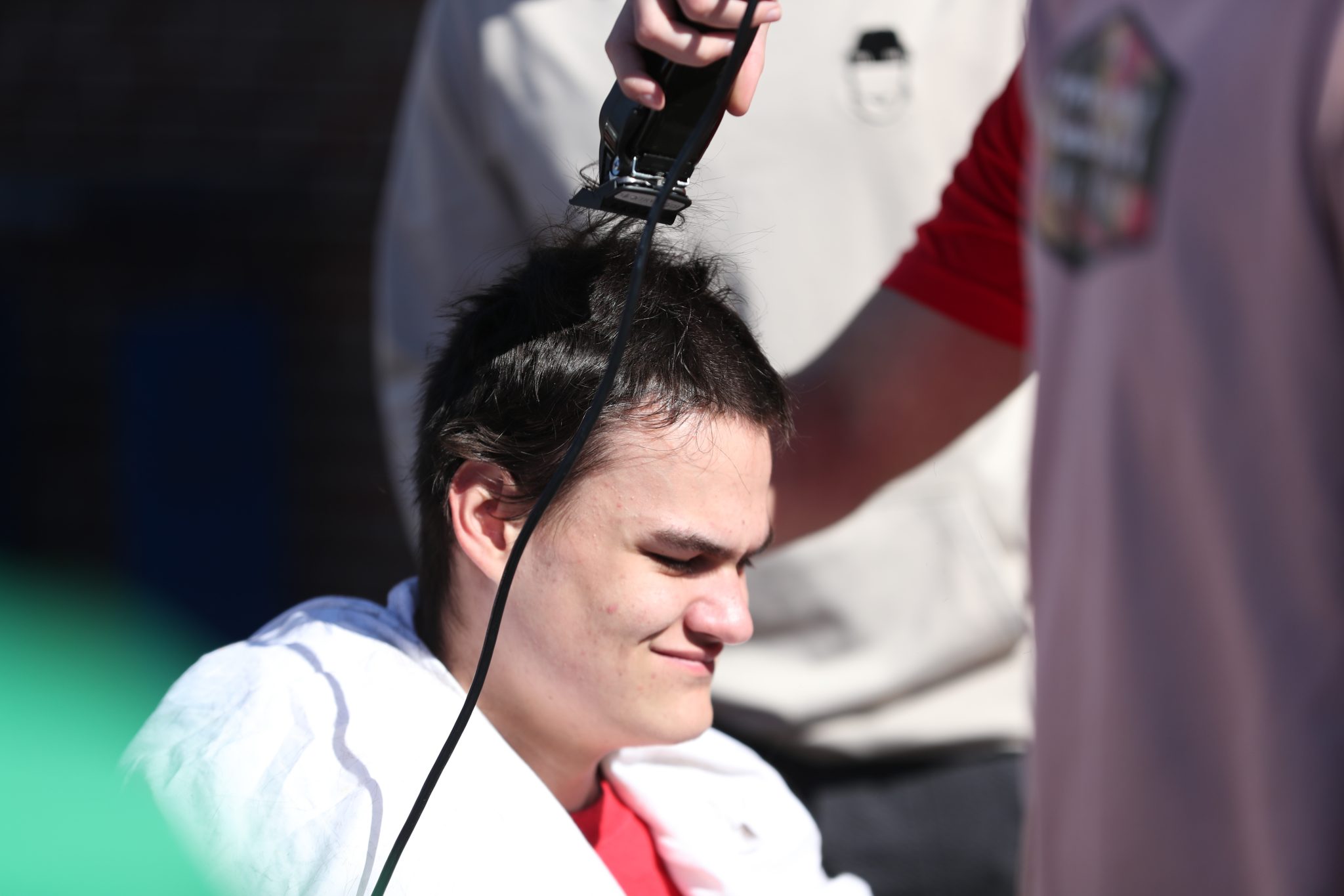“It has been very important to us over these past few years,” says senior captain Ben Rakauskas. “It is a great way to come together as a community while supporting a great cause. We have lots of fun shaving each other’s heads and I think it is a large part of the team culture and our motto ‘We is greater than me.’ It is a team and community before self mentality that I think will serve us well this season. That’s also why we refer to ourselves as a ‘Wolfpack.’ I also wanted to say that we really appreciate the Hale family for the generous donations. We raised between a quarter and a half million dollars this year which will be huge for cancer research. I’m happy to be a part of it and I know the other guys on the team are as well.”