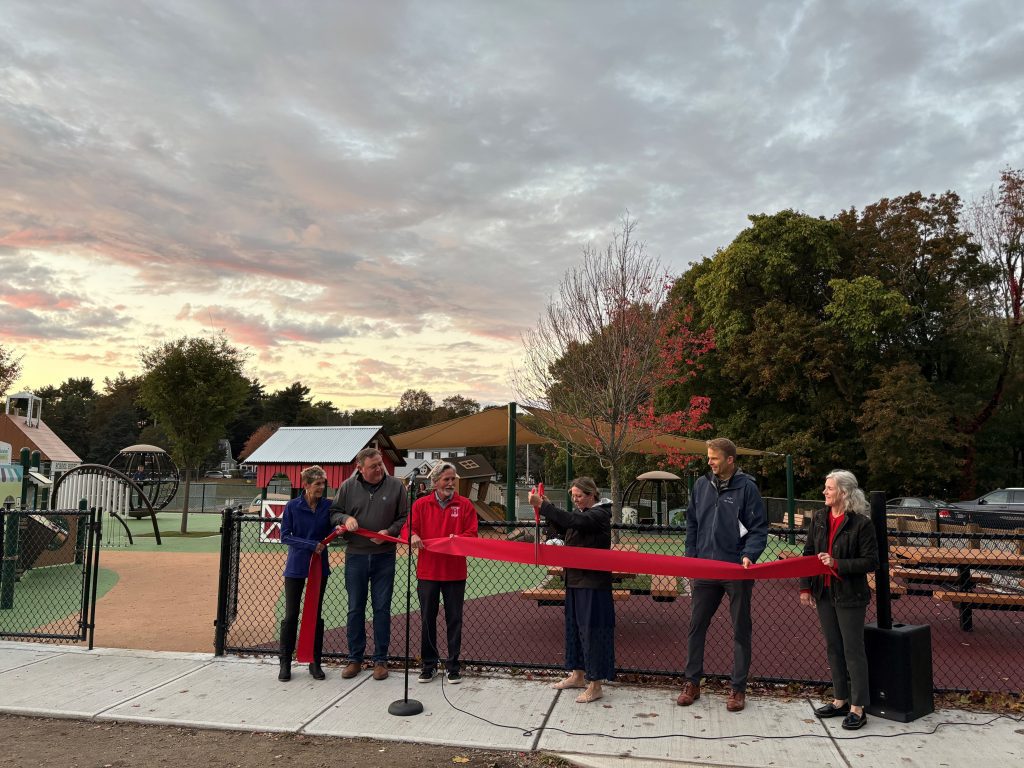 On October 8 the Hingham Recreation Commission celebrated the Hingham Community Playground’s official opening. The playground, located behind Town Hall, actually opened to an enthusiastic public on July 3 after closing for 9 months for a complete renovation.