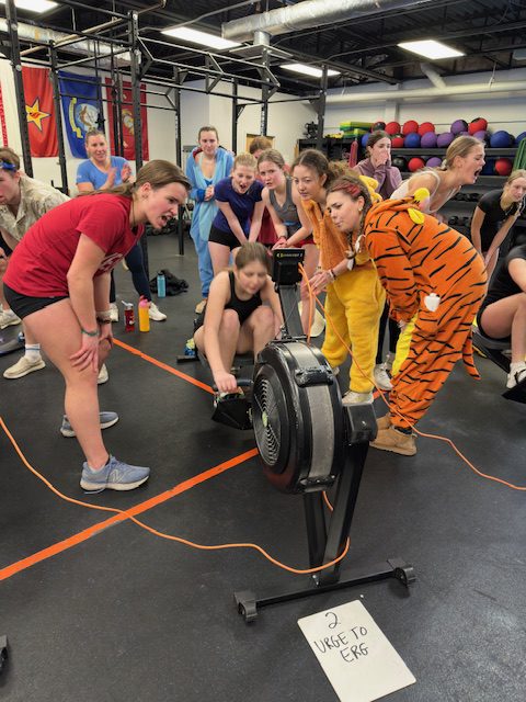 Each team left everything on the erg as they rowed great races, surrounded by loud cheers from their teammates and the many spectators who had gathered to witness the event. There were more than a few incredible performances as the rowers locked in and pushed hard to take home a win. On the wall facing the rowers, a monitor showed the progress of each “boat” as they traded leads and fought for every meter.