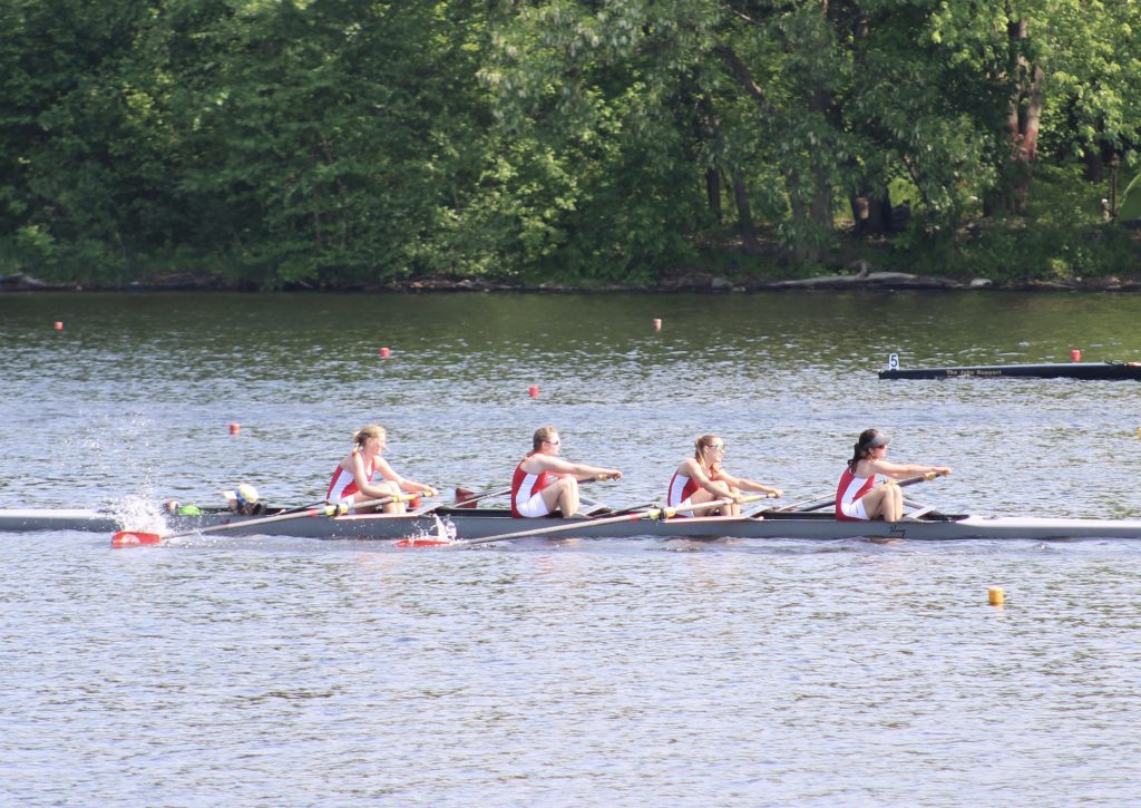 The girls new varsity four crossed the finish line fourth of out of six boats, missing medal contention by just three seconds. The varsity four included coxswain Octavia Atkins, stroke Shauna Arseneau, Anne Kyriss, Eva O’Sullivan, and bow Lauren Newth.