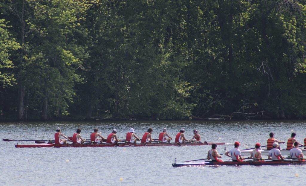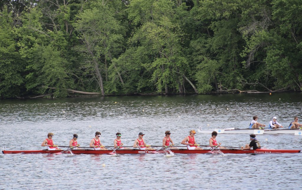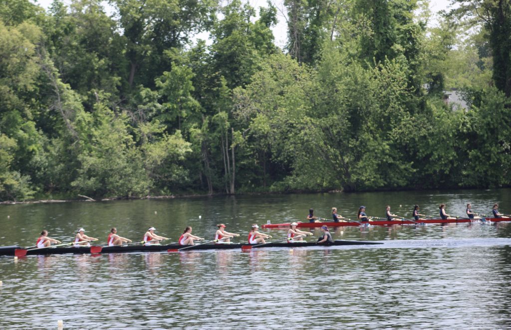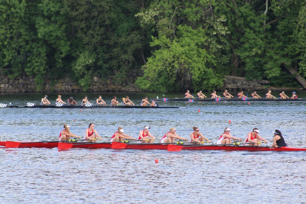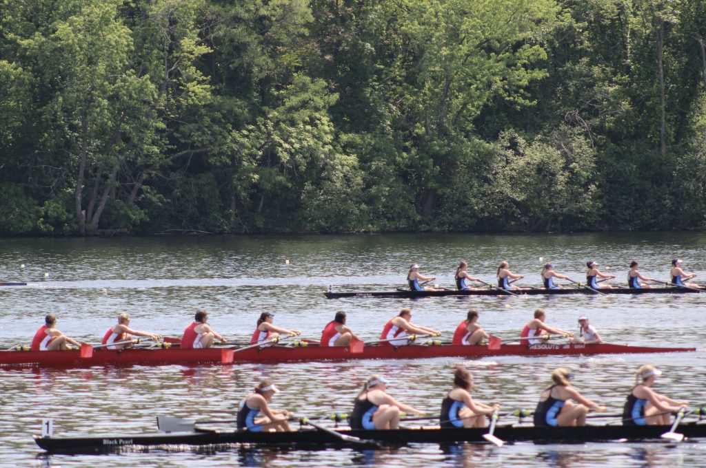 Hingham’s girls 1V crew racing at the Massachusetts Public School Championship Regatta.