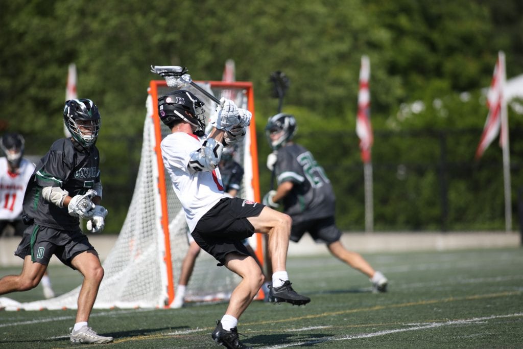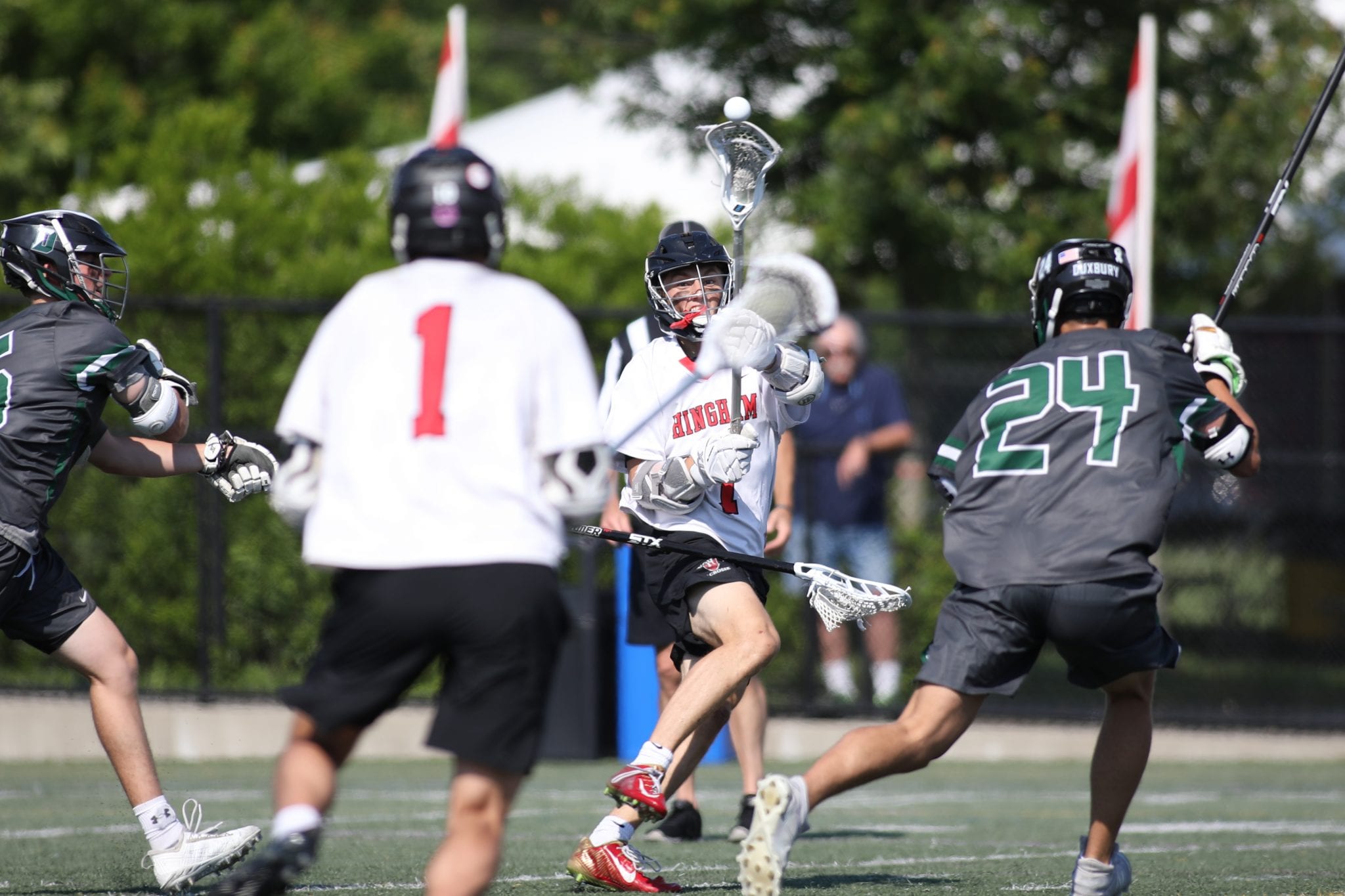 Although Hingham had the momentum at the end of the first quarter, Duxbury exploded in the second half. The Dragons won two faceoffs in a row, scoring both within the first two minutes of the quarter. The next five minutes were nail-biting for Hingham fans. Duxbury held possession and had great offensive looks but Hingham’s Bellomy was steadfast in net. Duxbury finally scored 5 minutes later on a turnaround shot by Ryan Nagle, lengthening their lead to three.