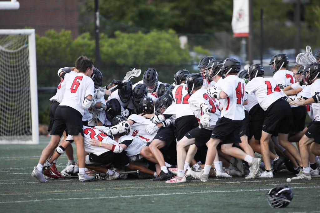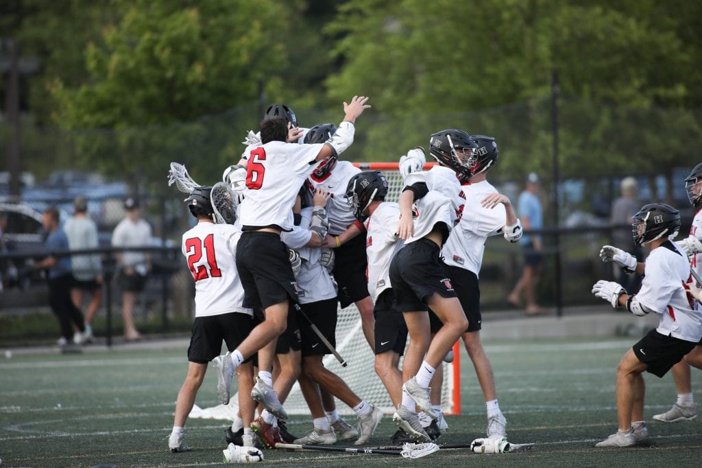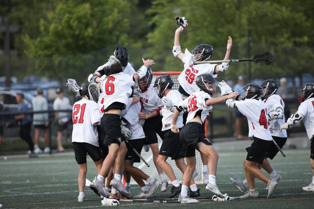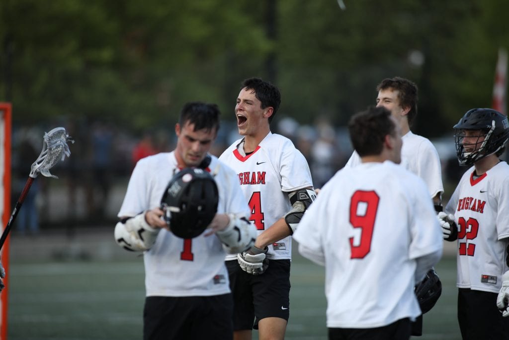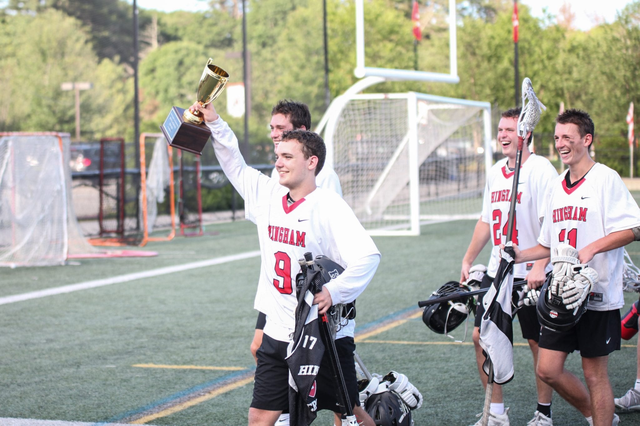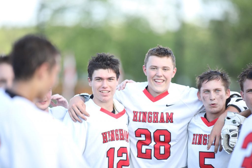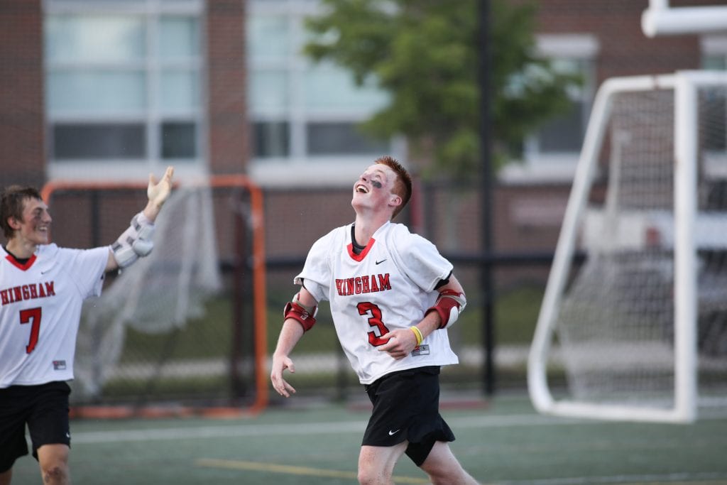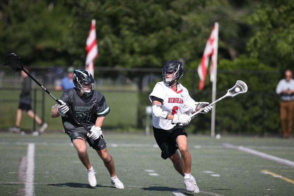 The Hingham Boys Lacrosse team defeated the Duxbury Dragons 11-10 in Tuesday’s finals of the Patriot League Cup. Hingham High was abuzz with action as students organized a “white-out” celebration at the game and families from Duxbury came to cheer on their team. After falling behind early in the first half, Hingham rallied to win in the game that came down to the last second.