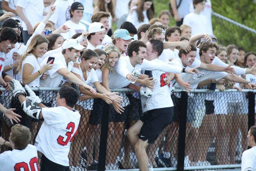 This began a period of no offense for both teams, with several turnovers. Hingham finally secured the ball and once again scored to lead the game. A pass found Hoffman within the slot, and the junior split defenders to take the low shot. Three minutes later, a man advantage penalty against Duxbury gave Charlie Packard an opportunity on the outside. With under 30 seconds left, he sniped the net and had Hingham fans on their feet. However, it was his celebration that had Hingham fans cheering the loudest, a picture that would circle social media for several days after the game.