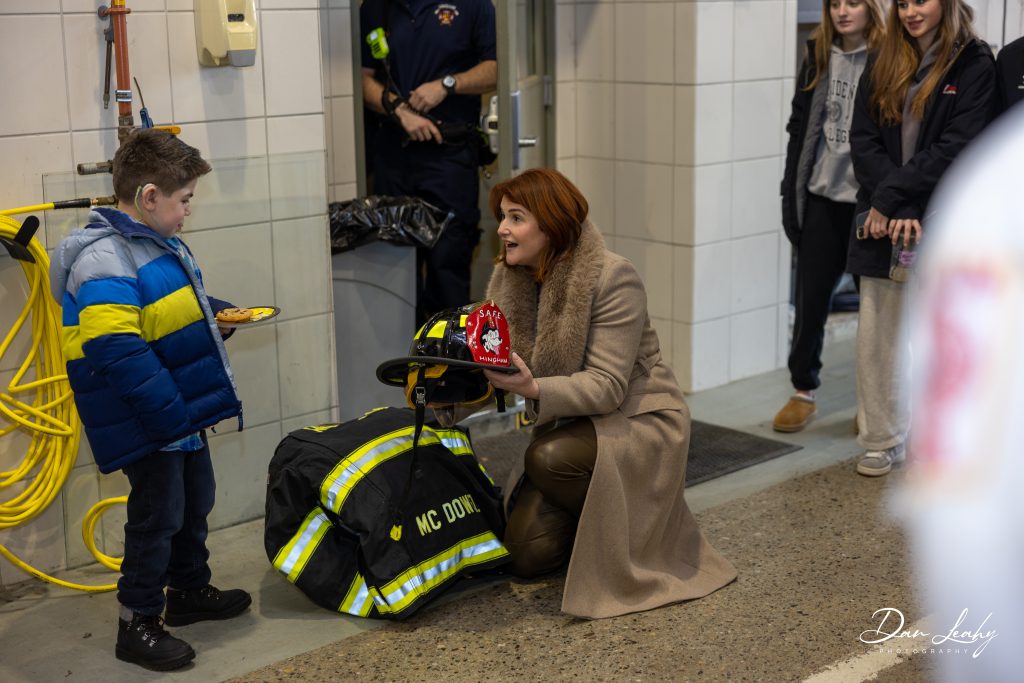 Once inside the fire station, first responders announced to Sebastien that his wish for a Disney cruise will soon be coming true. Sebastien’s Make-A-Wish volunteer team of Maeve Wilson of Braintree, MA, and Caitlin Wells of Boston, MA, were also on-hand to be part of the excitement.