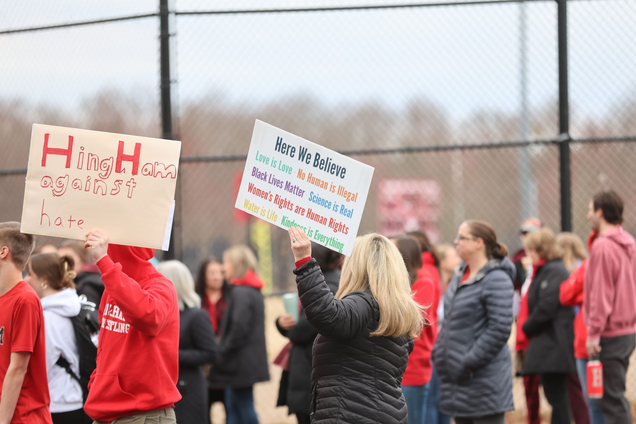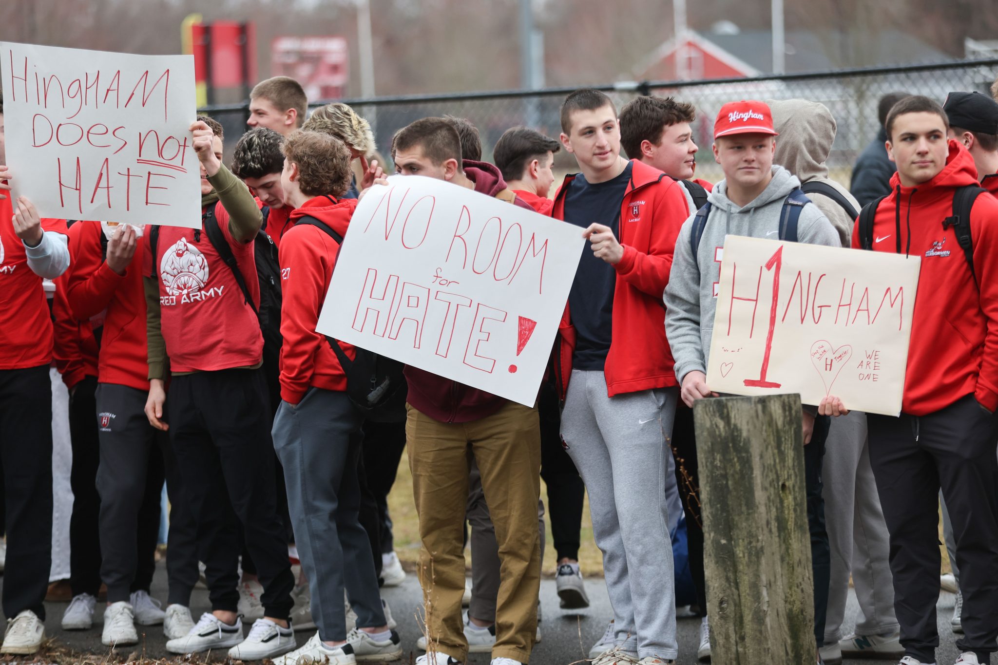 “I am so proud of the student leaders at Hingham High School for organizing this mornings silent rally against hate,” Weiss goes onto say. “They stood together to declare that hate will not win out over love and understanding. It was an honor to stand with them!”