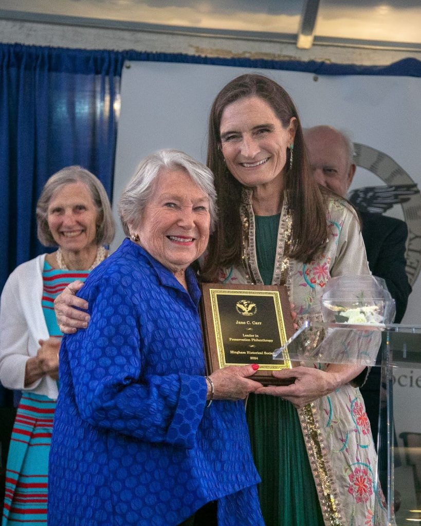 Over 225 supporters gathered under the tent at the Benjamin Lincoln House this past Saturday to officially open and celebrate Massachusetts’ newest house museum – just in time for the 250th commemoration of the American Revolution and in 2026, America’s 250th birthday. Guests heard from representatives of the Hingham Historical Society, the town of Hingham, Historic New England and Revolution 250. Jane Carr received the Society’s inaugural award in preservation philanthropy and all in attendance were able to publicly thank the Lincoln descendants for stewarding this National Historic Landmark into the 21st century. Following the celebration under the tent, guests enjoyed a seated dinner at the Hingham Heritage Museum. The Society expresses its sincere thanks to all who support the Campaign for the Benjamin Lincoln House and invites those who have not yet contributed, to be a part of this important milestone in Hingham and American history by donating at hinghamhistorical.org