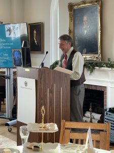 The Hingham Historical Society recently kicked off the Holiday season with a festive Holiday Tea in the ballroom of the Hingham Heritage Museum. Beside the grand Christmas Tree, guests were served a beautiful classic tea service accompanied by savory tea sandwiches and sweet treats. Guest speaker Ken Turino from Historic New England presented a fascinating lecture on the evolution of modern American Christmas traditions from the use of greens in decorating to gift giving. A merry afternoon was had by all connecting with friends and neighbors.
