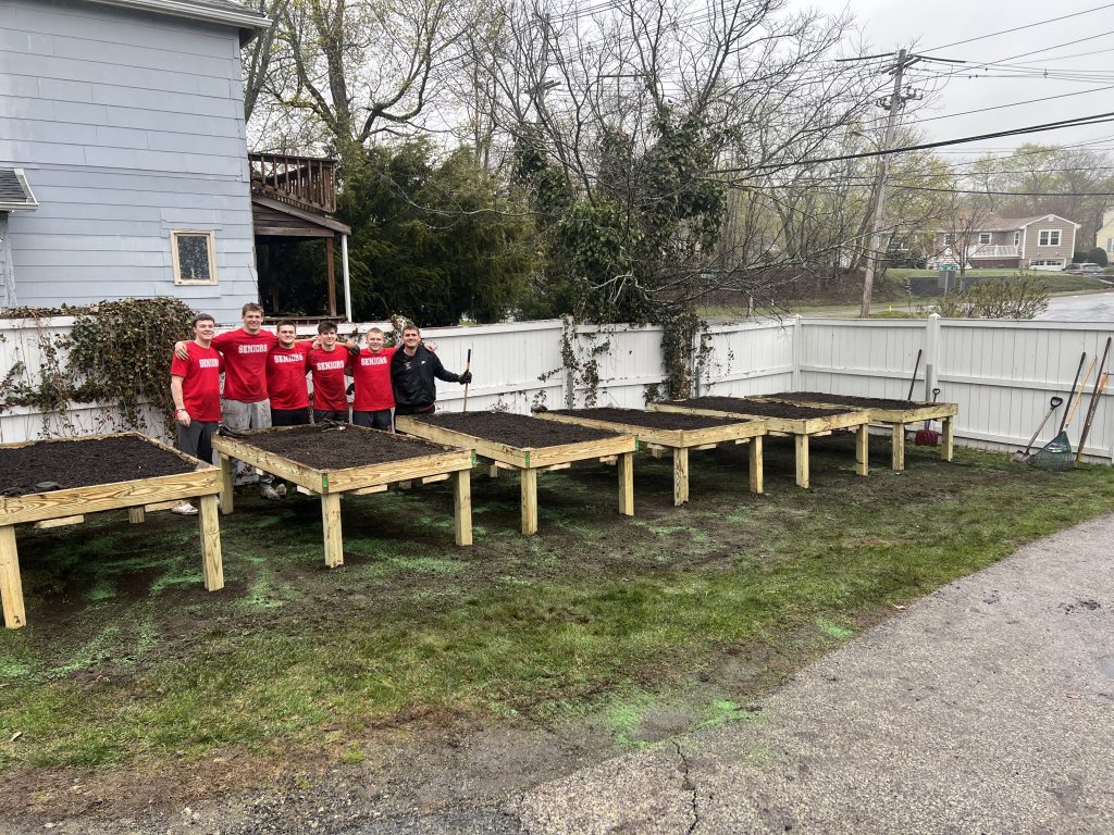 Under the guidance of Patrick Driscoll – Hingham HS Class of 2007, the players learned how to construct six raised garden beds. Driscoll is the owner of Lunch Construction & Design and volunteered his time and expertise in constructing the beds.