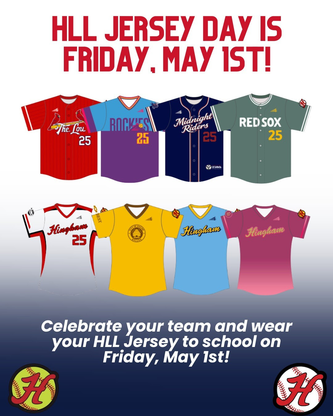 Celebrate your team and wear your Hingham Little League (HLL) jersey to school on Friday, May 1st!