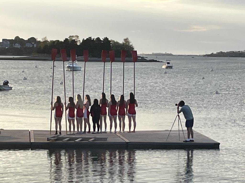 Jack Burns photographing an HHS girls crew at HMC (photo courtesy of Holly Moriarty)