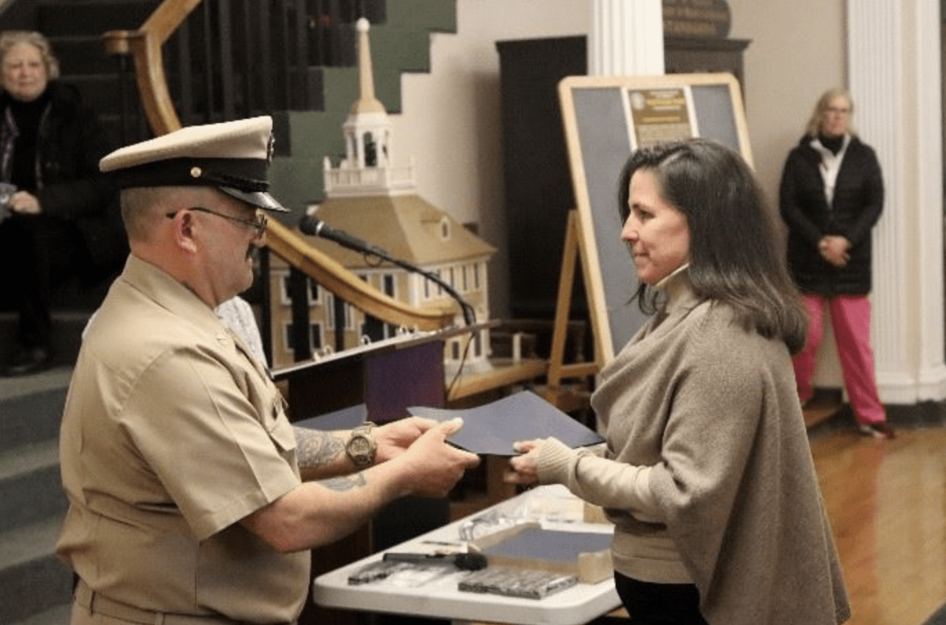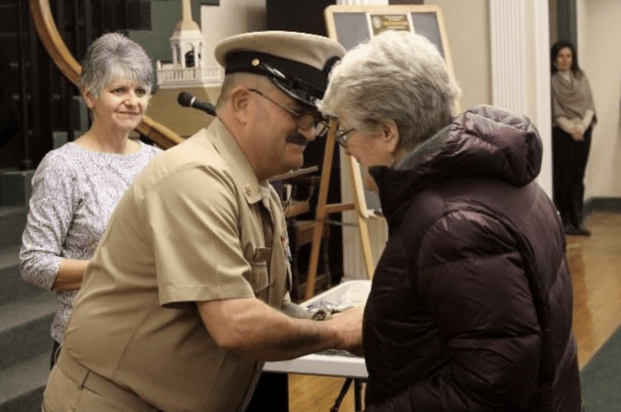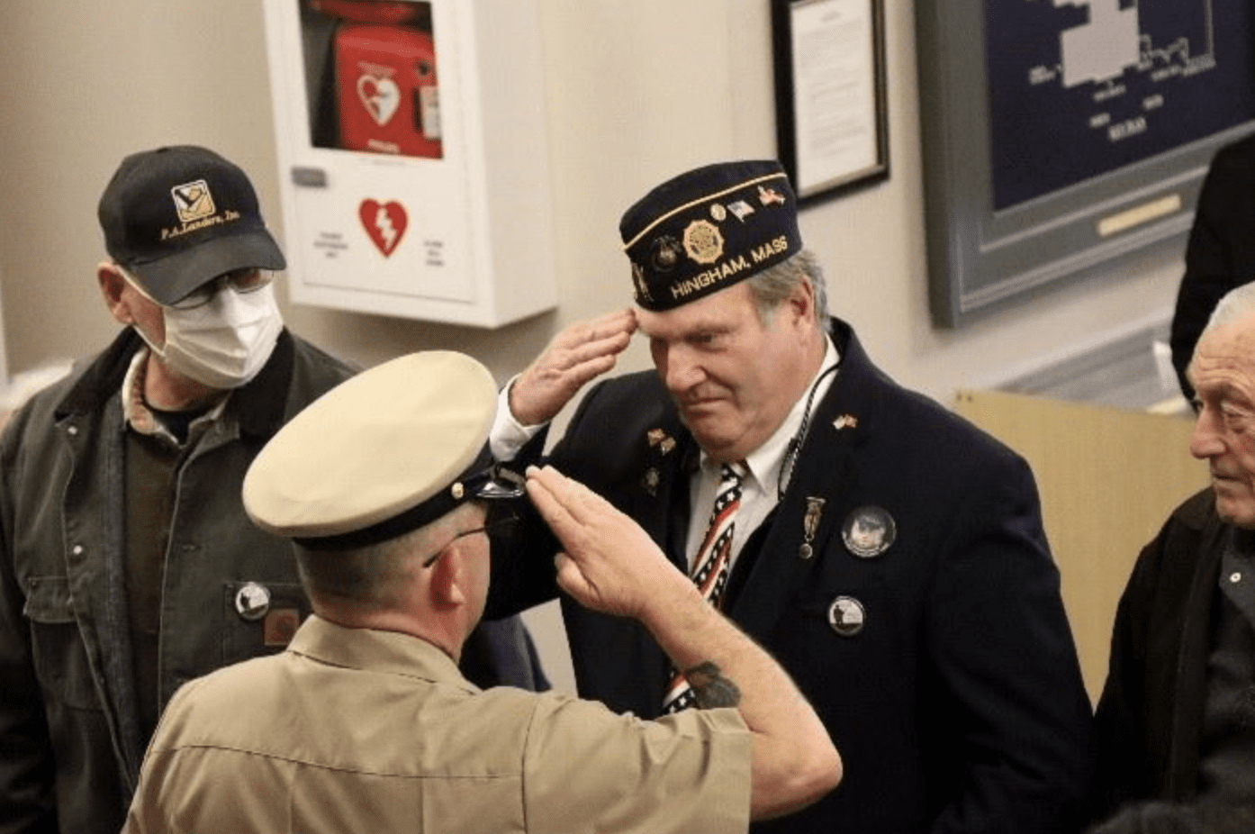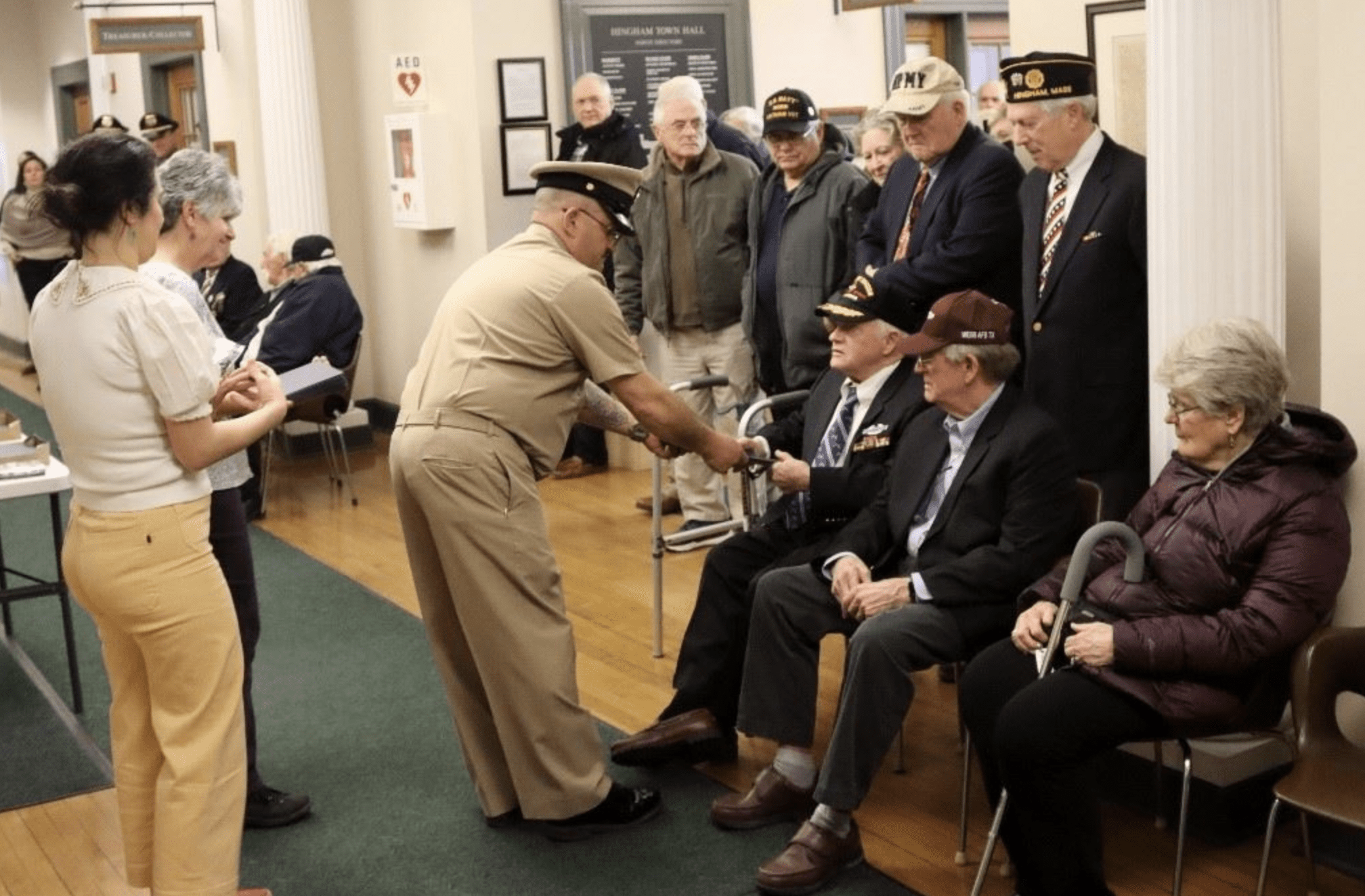 "Participating in this commemorative program cost the Town of Hingham nothing, but it means everything to the men and women who are gathered here today," Director Jermyn said. "To pay tribute to them, we present them with these pins, as well as a thank you, and salute and a welcome home."