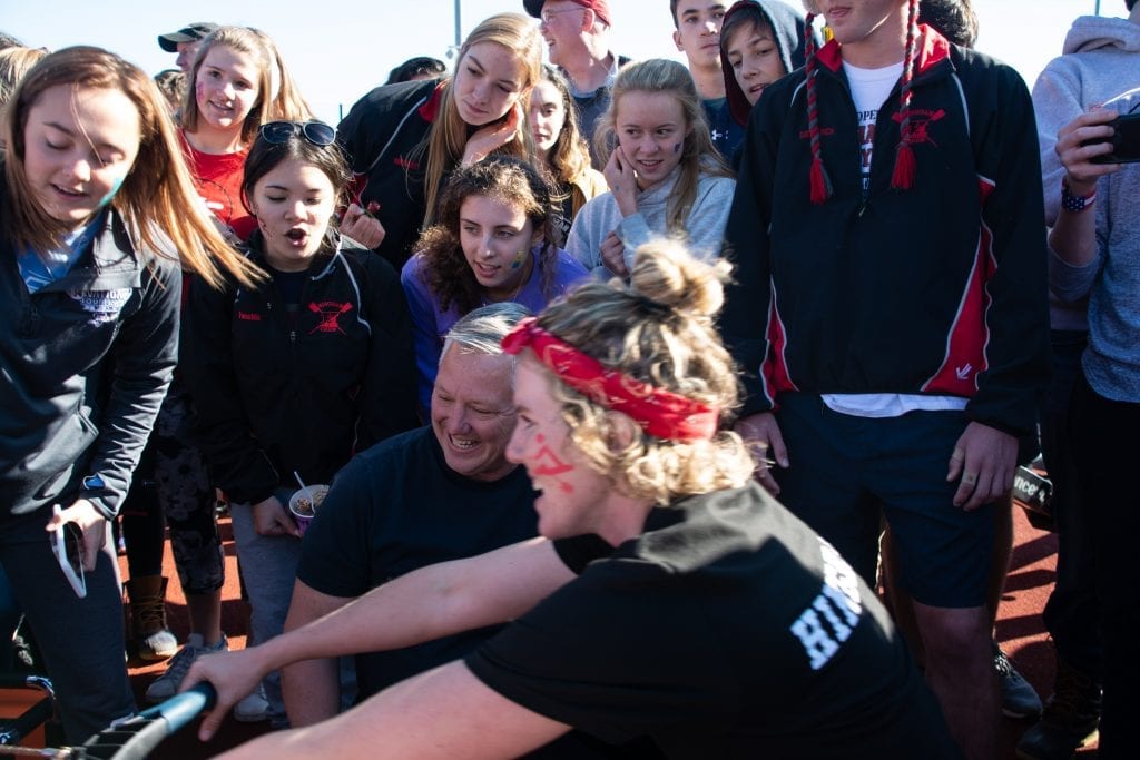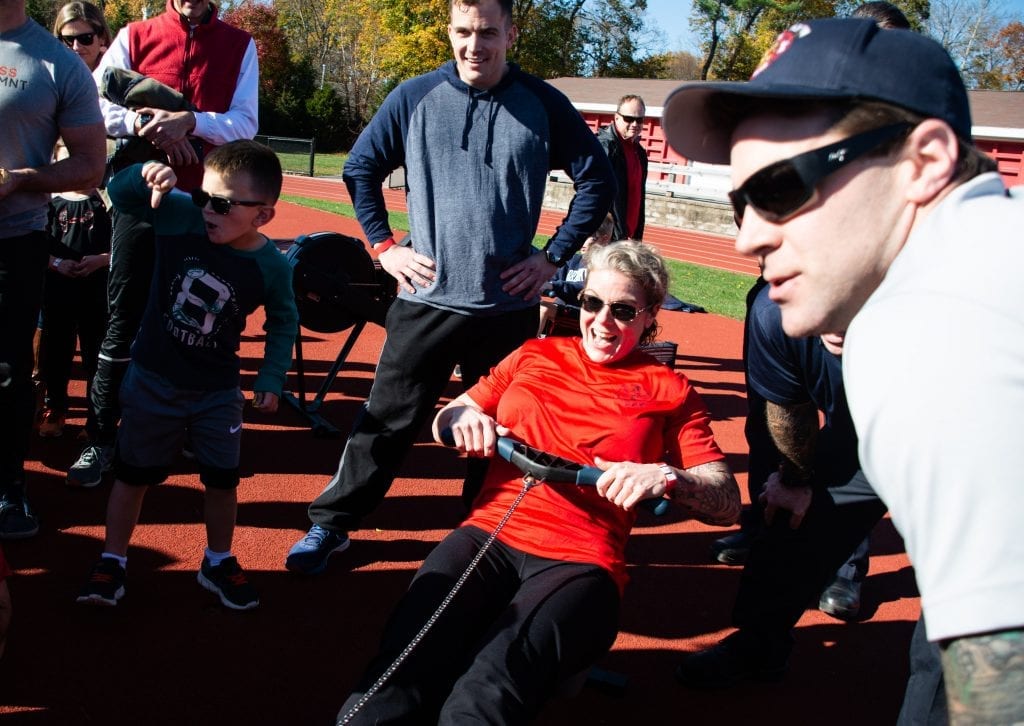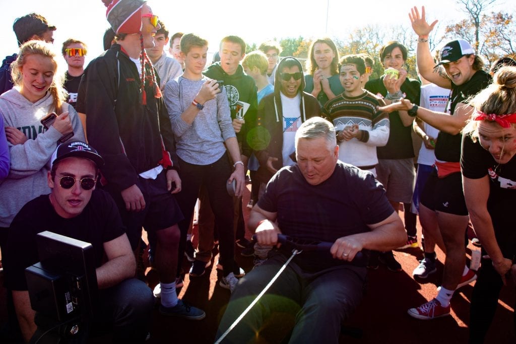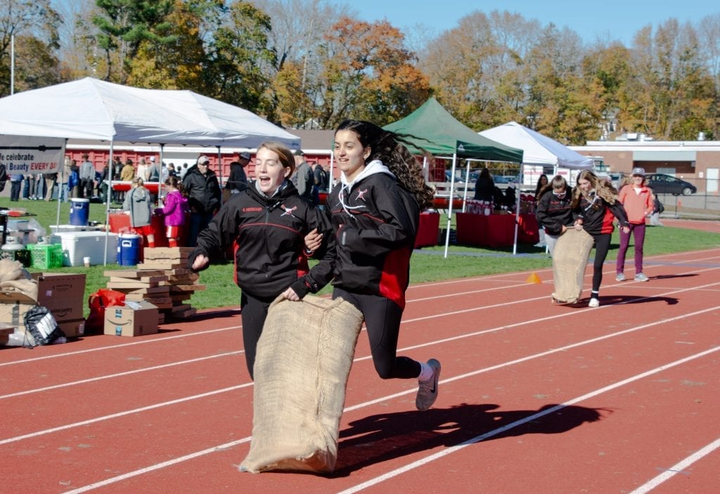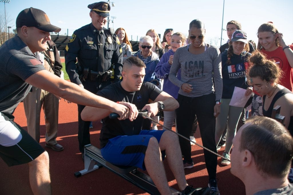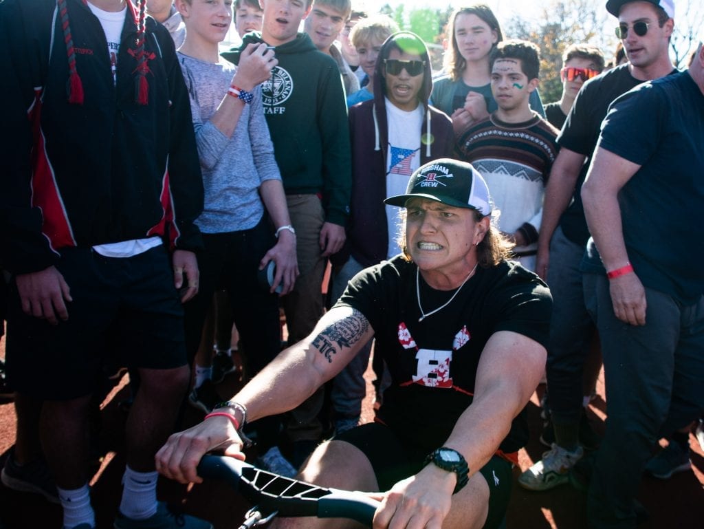 Lots of fun in this Fundraiser! On November 2nd, the HHS Crew team and their families sponsored the Crew Challenge Carnival. The HHS Track field was alive with a bouncy house, relay running races, games, caricatures, face painting and BBQ fresh off the grill. Mass MVMNT of Hingham was on hand donating time and equipment and delivering a unique physical challenge. Athletes taught attendants how to erg (stationary rowing machine) and erg relays races were conducted throughout the day. The main event was a 3-way erg relay race squaring off Hingham Police, Hingham Firefighters and HHS Crew (coaches and a few brave dads). As the enthusiastic crowd cheered on the teams, HHS took first and the Firefighters beat out the Police by a few strokes! The carnival was a true community event!
