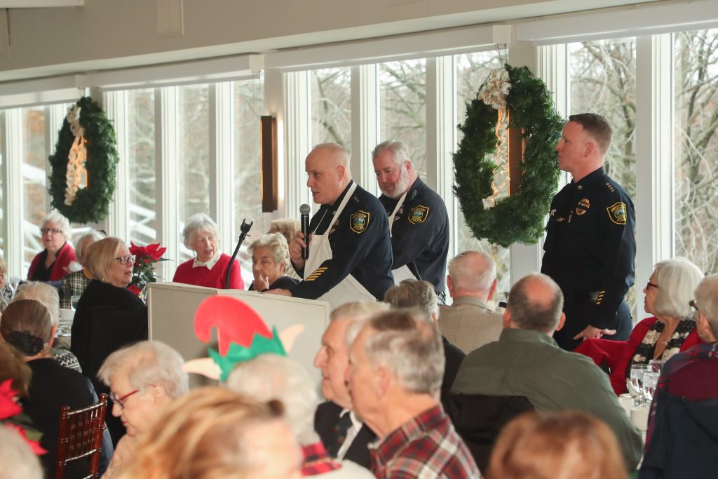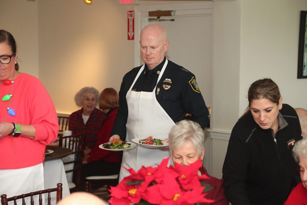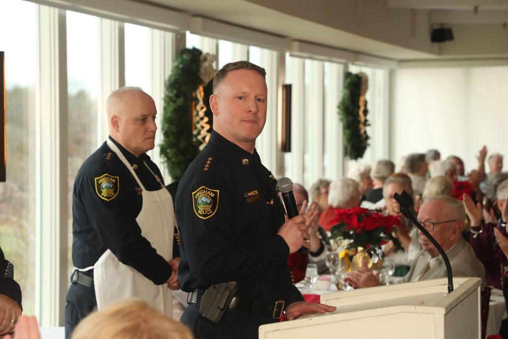 Older residents attend the luncheon for more than the meal. “Guests enjoy the opportunity to socialize with Hingham police officers,” Young explained. “Events like this help to build relationships of trust between officers and senior residents. It is a really wonderful program, and the chocolate mousse was fantastic!”