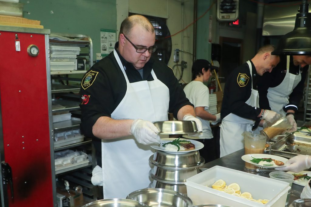 The HPD officers assisted the Raffael’s staff at the Country Club with meal preparation, served the food, and performed cleanup duty.
