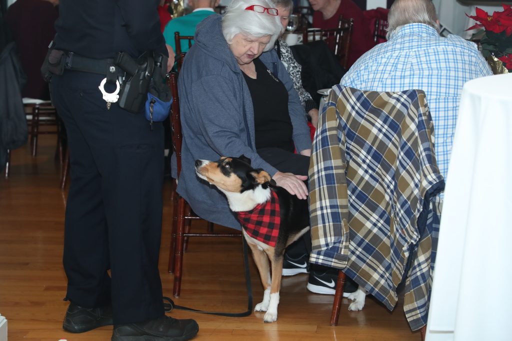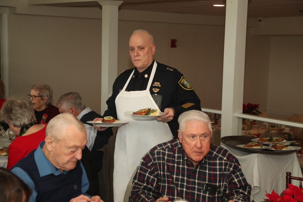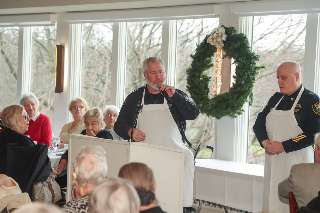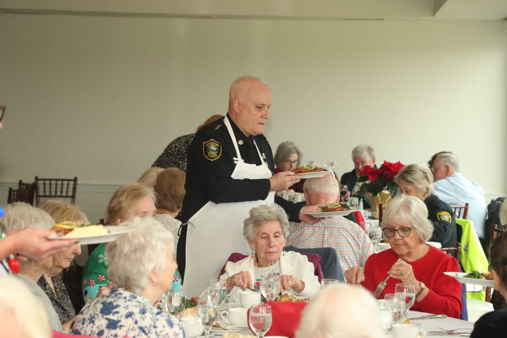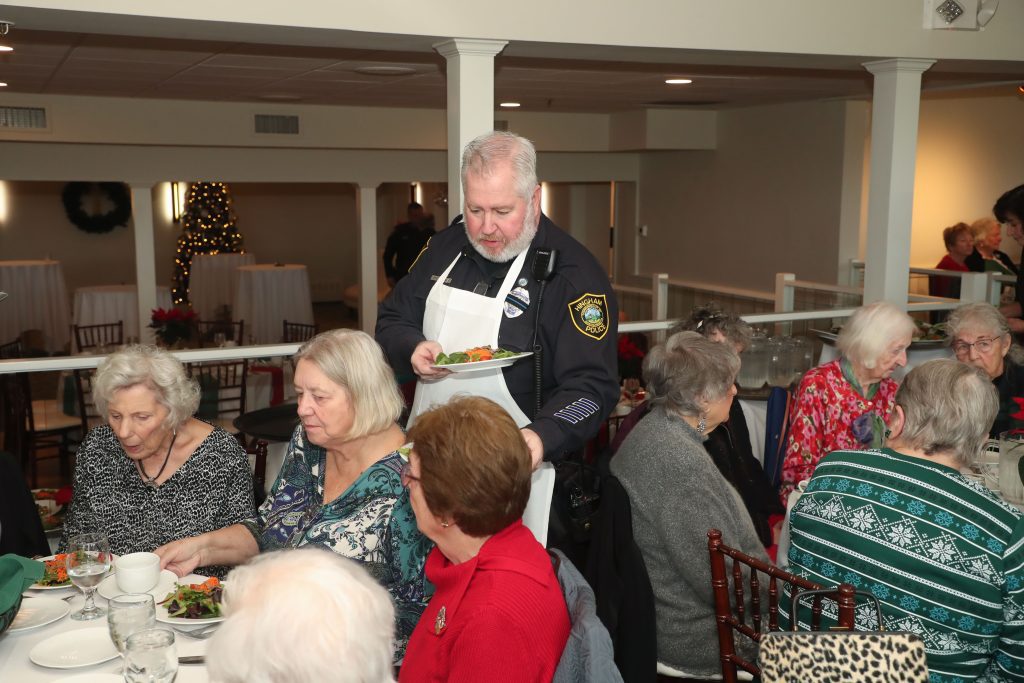 Older residents attend the luncheon for more than the meal. “Guests enjoy the opportunity to socialize with Hingham police officers,” Young explained. “Events like this help to build relationships of trust between officers and senior residents. It is a really wonderful program, and the chocolate mousse was fantastic!”
