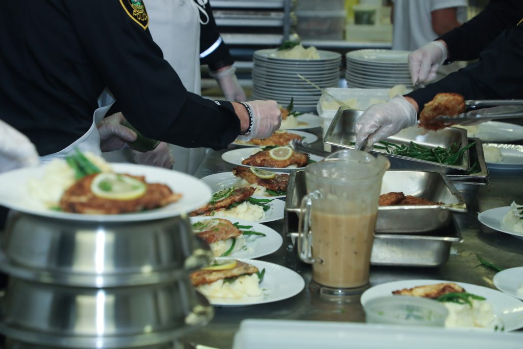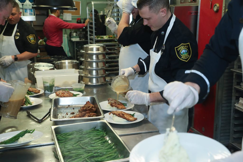 The HPD officers assisted the Raffael’s staff at the Country Club with meal preparation, served the food, and performed cleanup duty.
