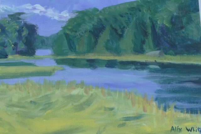 has worked for 30 years providing care for the elderly both privately and within residential settings, praised for her gifts and skill in this work. She is deeply spiritual, a member of her church’s choir and prayer community. She was educated at BU School of Fine Arts and California College of Arts and Crafts where she received her BFA. She is a founding member of Cohasset Open Studios and a gallery artist at the South Shore Art Center. She exhibits locally and internationally. You can see more of her work at her website: alixwhitepainting.com
