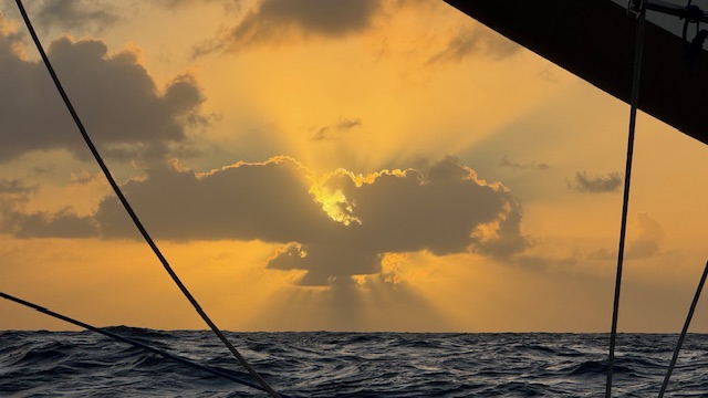 “There was no land in sight, nowhere to stop – it was just beautiful, open ocean,” he explained. In between crew members’ watch schedules, the adventure featured “some peaceful moments” and opportunities for reflection, reading, and occasionally texting photos and messages to their families through satellite internet service, when available.