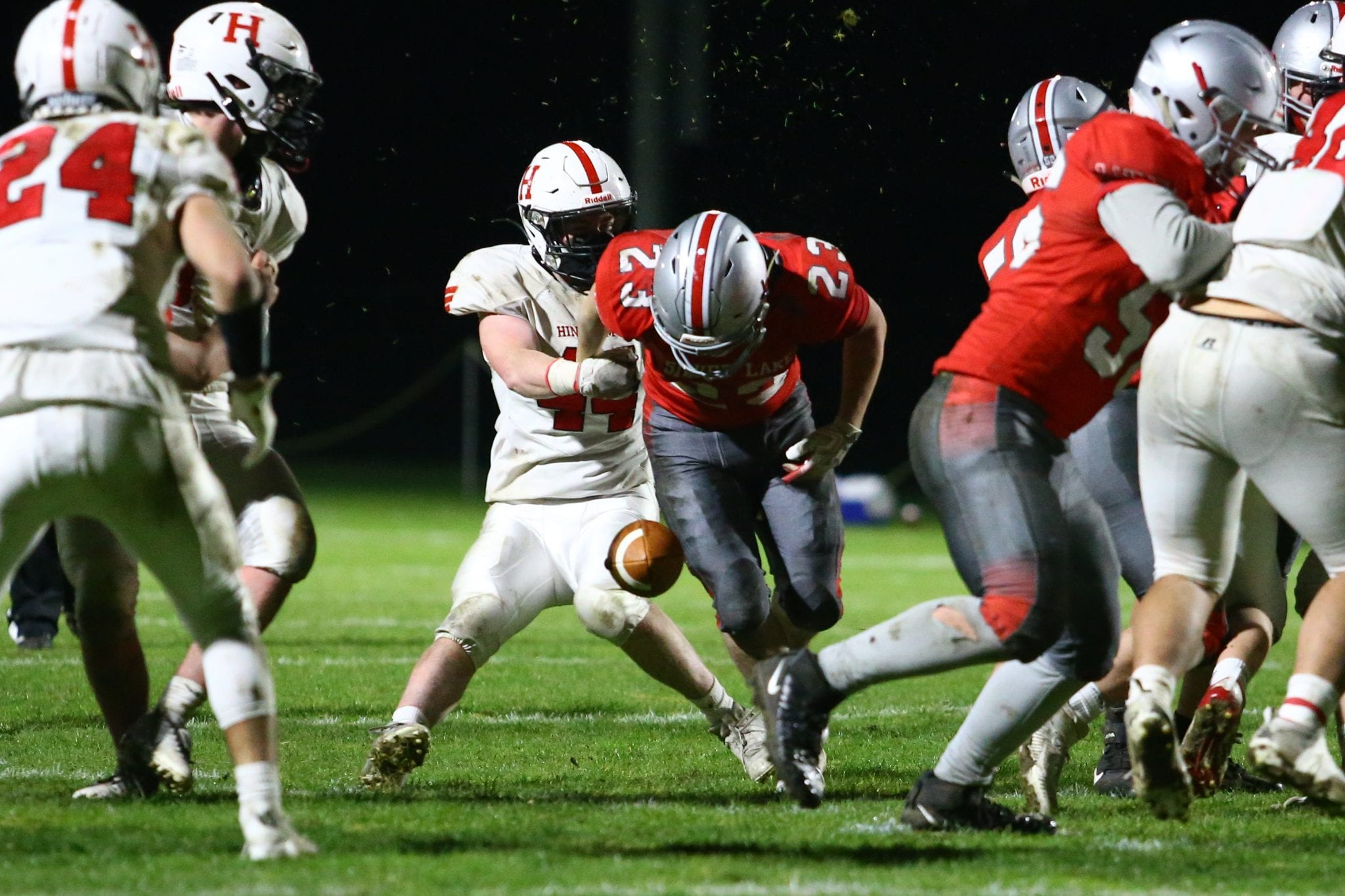 However, the Lakers responded with their own passing plays, with senior quarterback Ben Lofstrom finding tight end Thomas Ohlson. Hingham’s defense held the Silver Lake offense at their 40-yard line, forcing the Lakers to go for it on 4th down. A sack by senior Ryan Devine forced the turnover on downs, giving the ball back to Hingham.