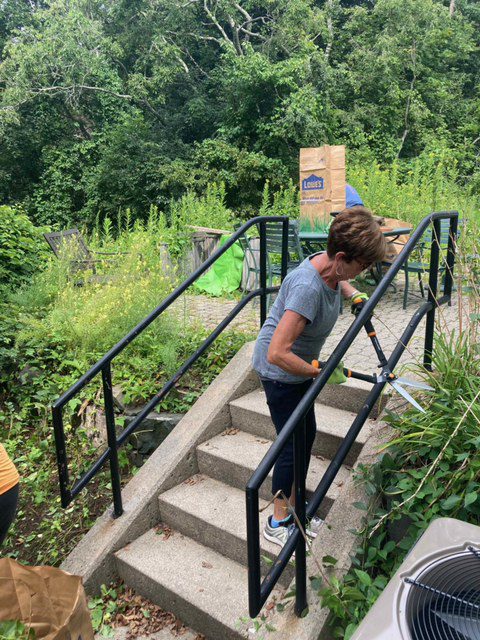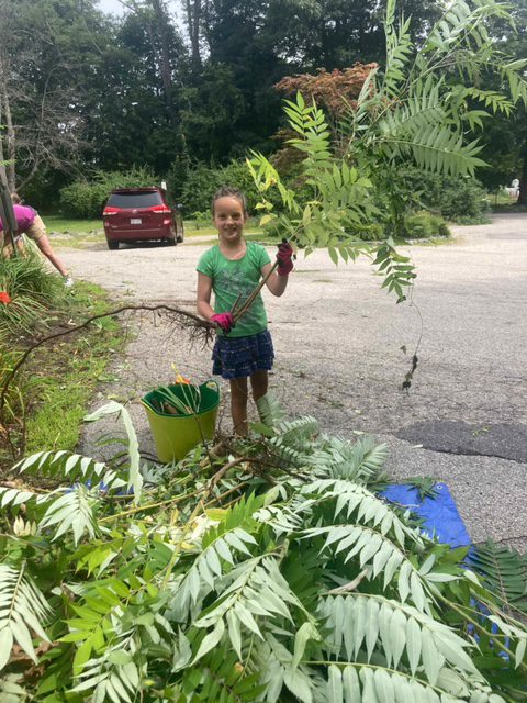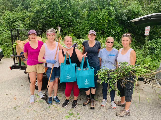 Hingham Unity Council formalized the August 4th cleanup event and put the call out for help. Volunteers included Tracy Buckeridge, Lisa Carter, Rose Coyle, Susan Hollis, Nancy MacDonald, Kerry Ni, Barbara Nicosia, Courtney Orwig, and Susan Regan, among other volunteers. Womanade South Shore donated funds for landscape materials and Clandestine Kitchen donated delicious meals for both the volunteers and residents who chose to participate. Nona’s ice cream truck also stopped by to support the volunteers and residents.