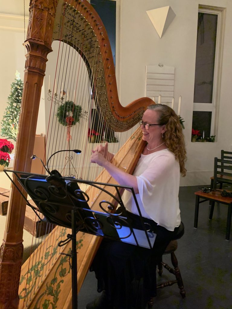 The concert opens with most of Benjamin Britten’s Ceremony of Carols, featuring Hingham resident Tracy Allen on harp and Scituate resident and accompanist Lenae Badger on piano. Britten drew inspiration from medieval English poetry and a collection of 15th-century texts, crafting a musical tapestry that captures the essence of the Christmas season.