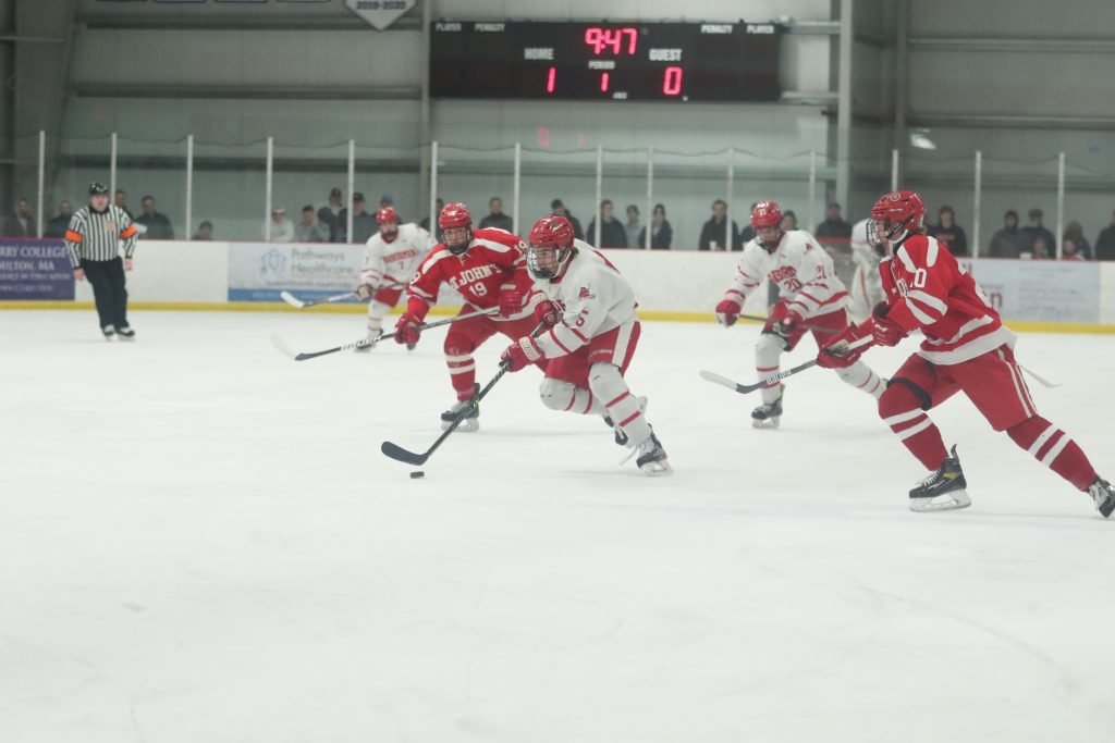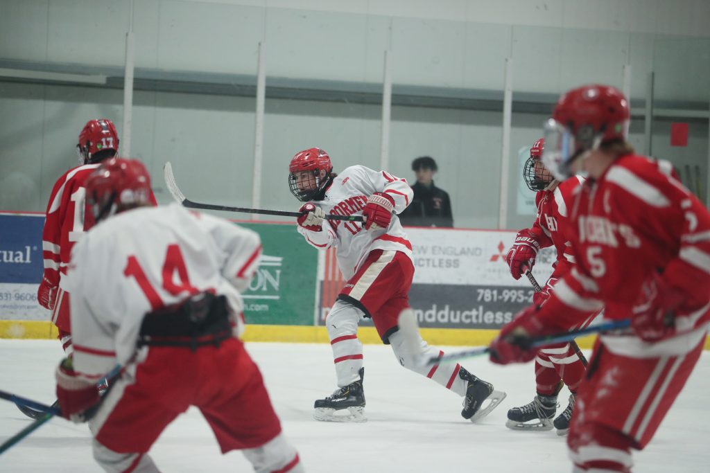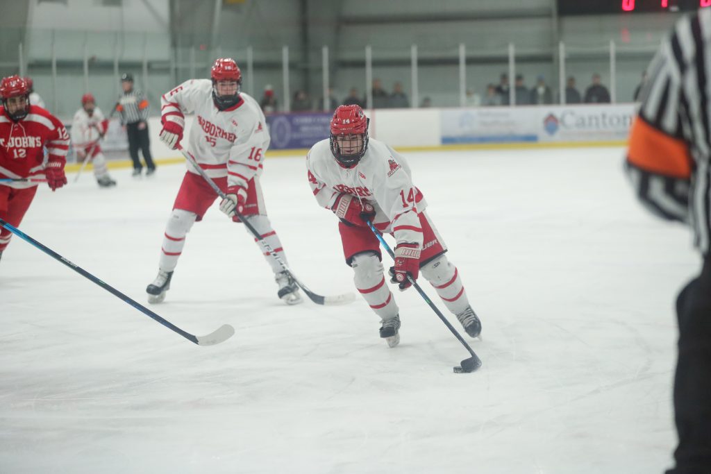 Iaria notched his first two goals of the season in Hingham’s 4-0 win over St. John’s Shewsbury yesterday in their opening round game of the D1 State Tournament.  He opened the scoring in the first when he tipped a Chase McKenna shot into the back of the net.  Senior Ryan Burns added another one before the end of the first to make it 2-0.  The scored stayed that way through the second and into the third when Iaria netted his second of the game to increase the Harbormen’s lead to 3.  Junior Billy Jacobus added an empty netter with under a minute to play.