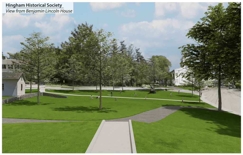 Planned improvements at the intersection of North and Lincoln streets at Fountain Square and the surrounding area near Hingham Historical Society’s Benjamin Lincoln House and the Old Ordinary will be funded in part by two Massachusetts Department of Transportation grants totaling $250,000. The Society has been a key player in the plan.