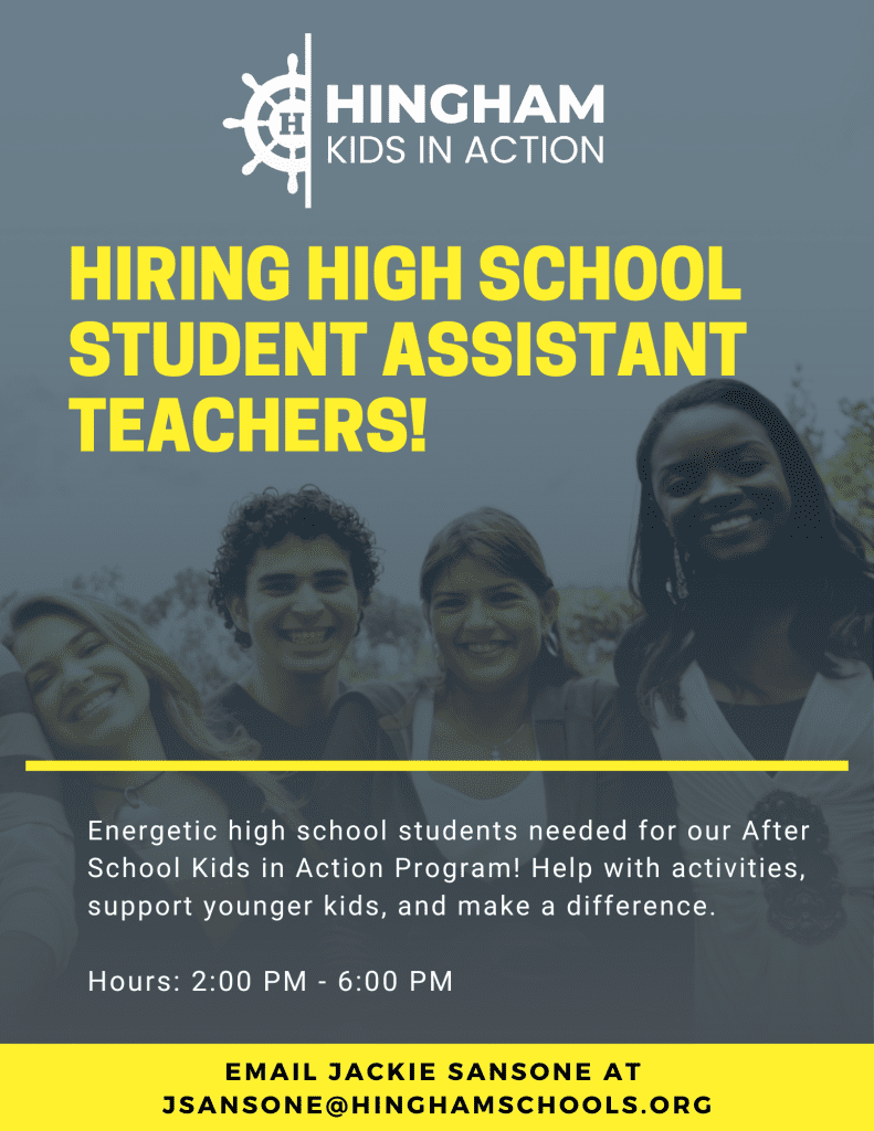 Apply Today! For more info, contact Program Director Jackie Sansone at jsansone@hinghamschools.org